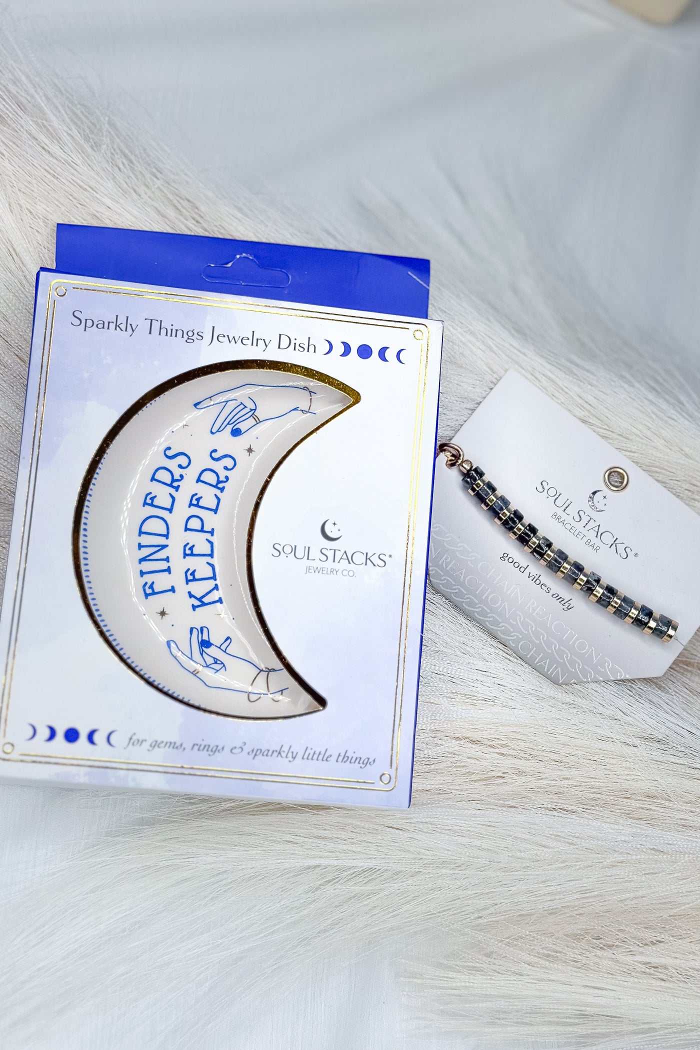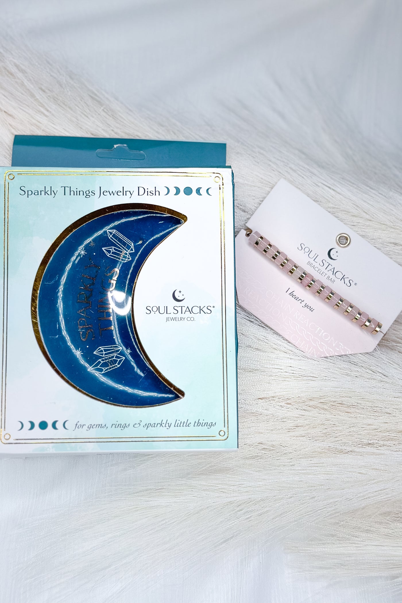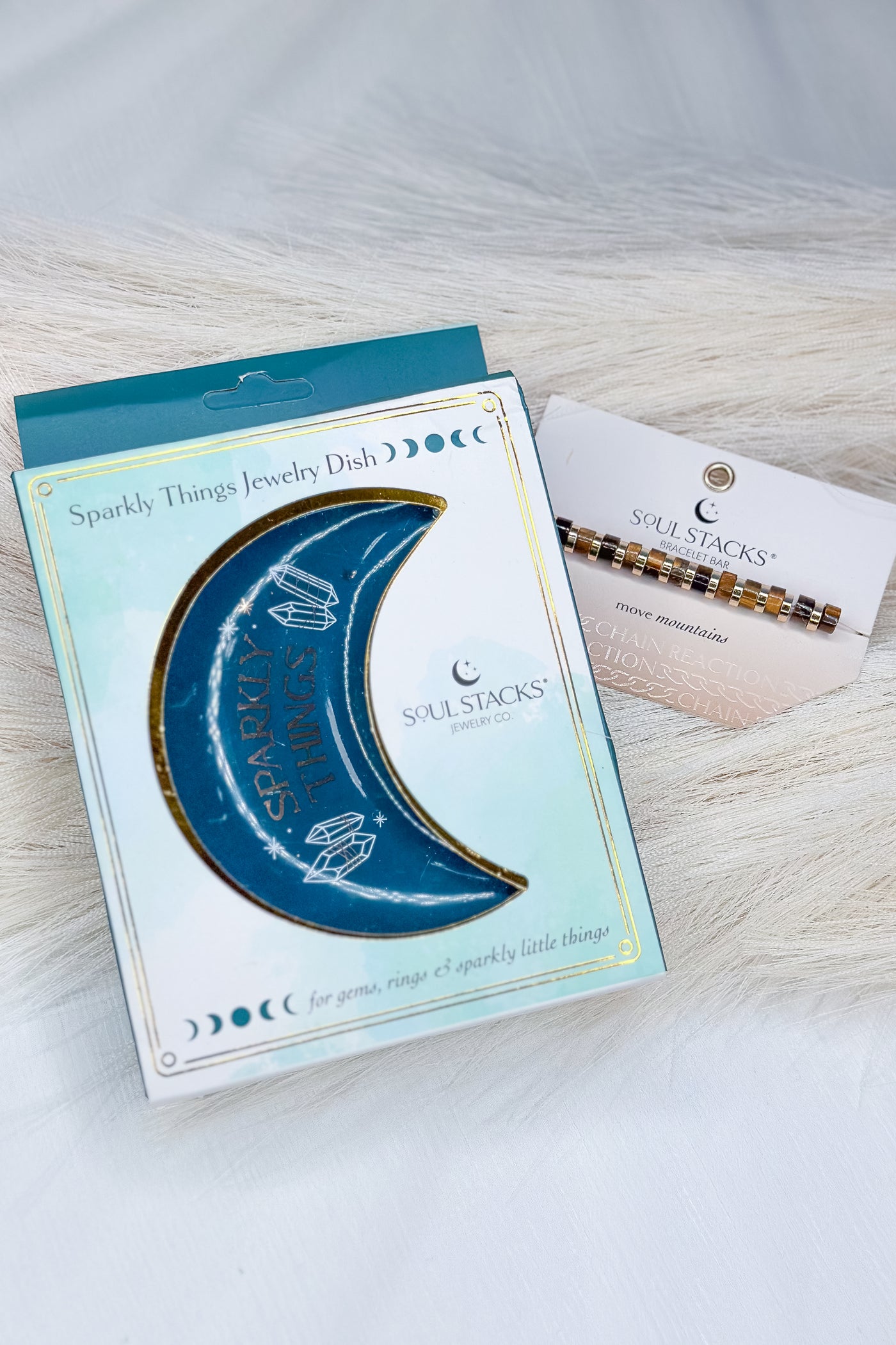 Gold Bar Chain Stack Bracelet + Jewelry Dish
