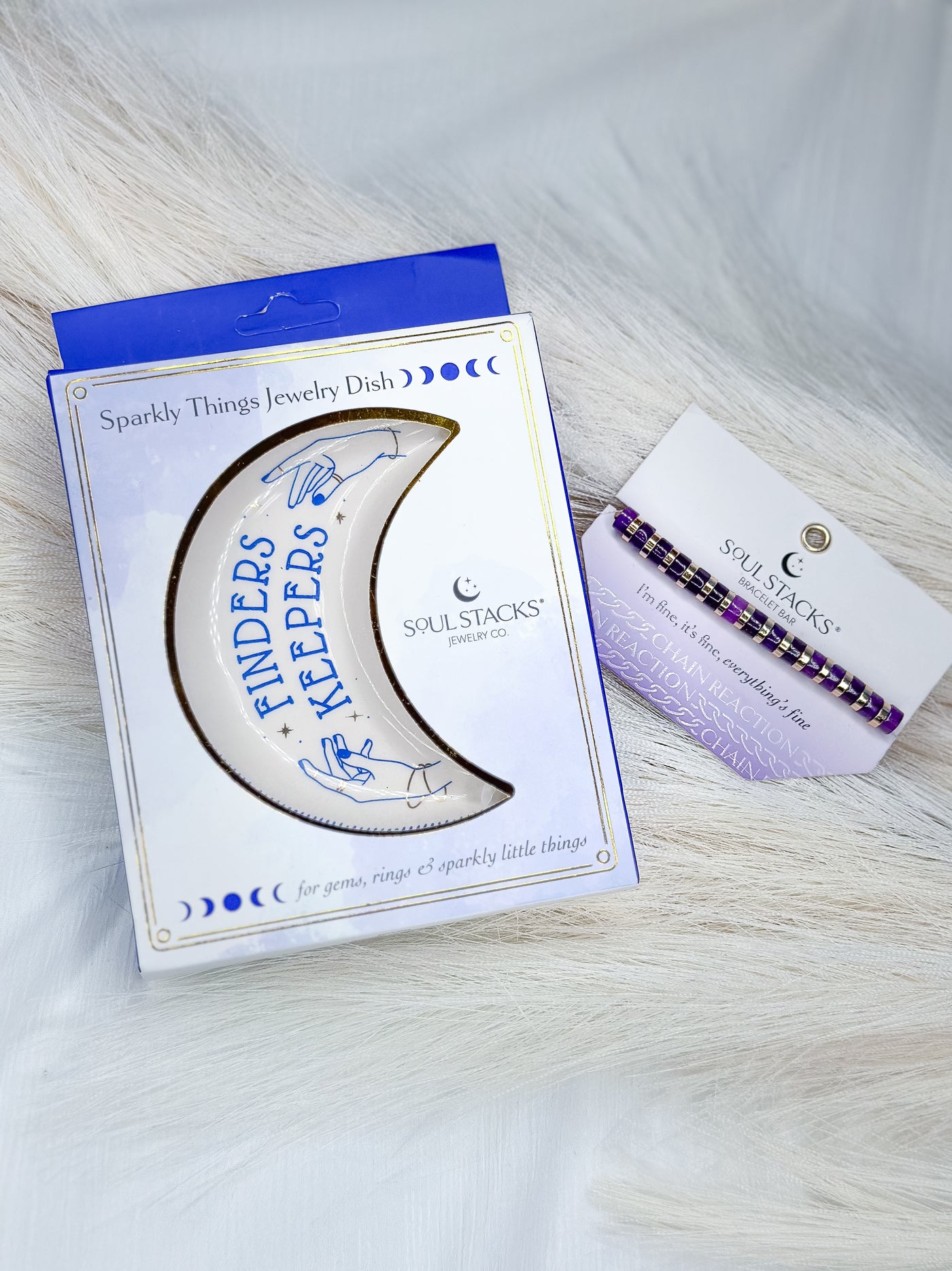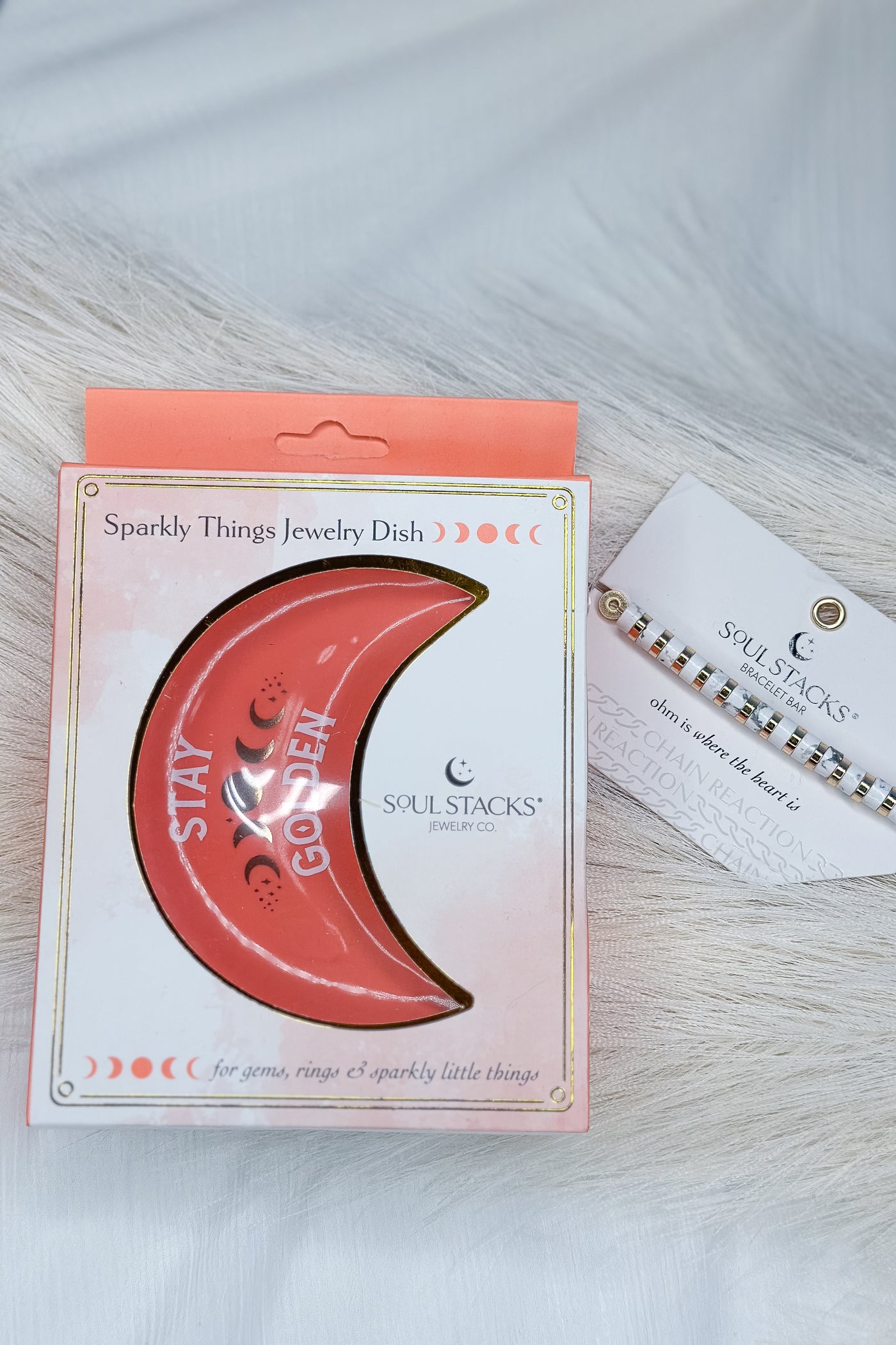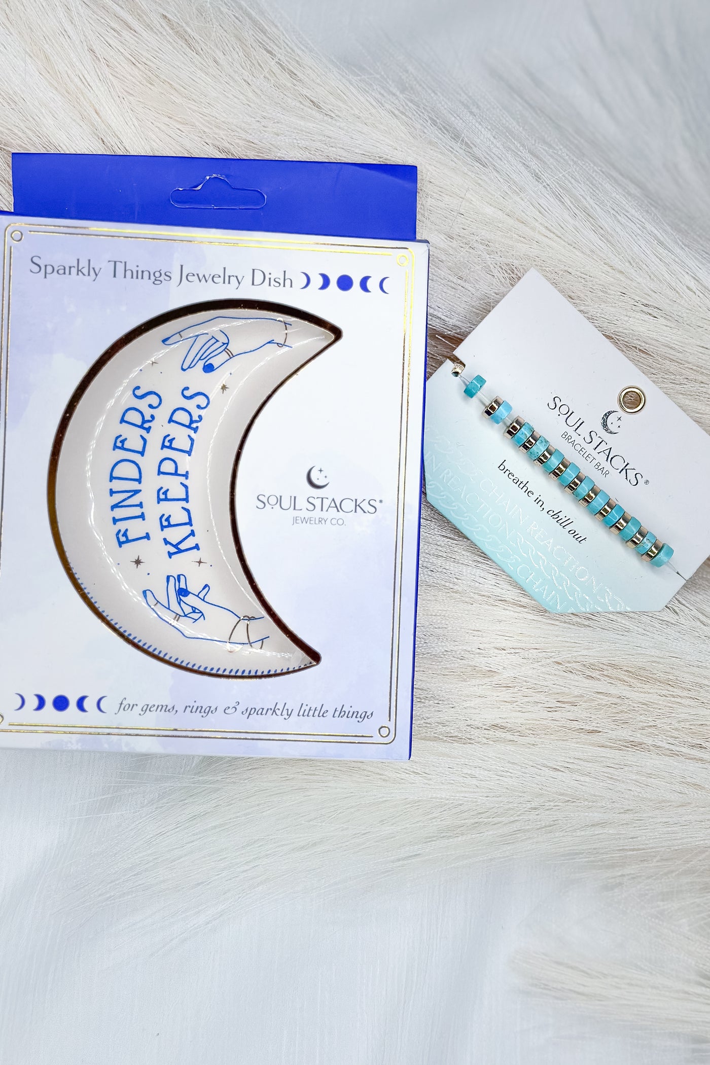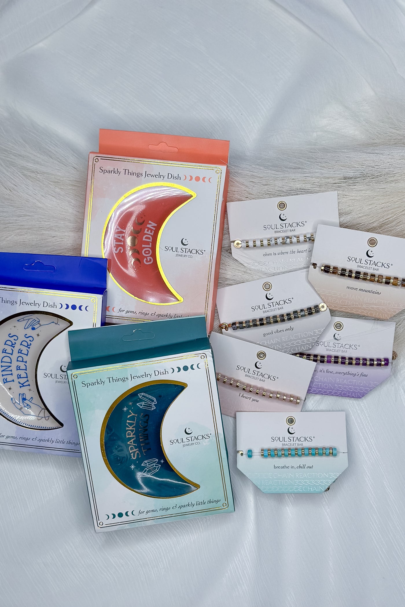 Gold Bar Chain Stack Bracelet + Jewelry Dish