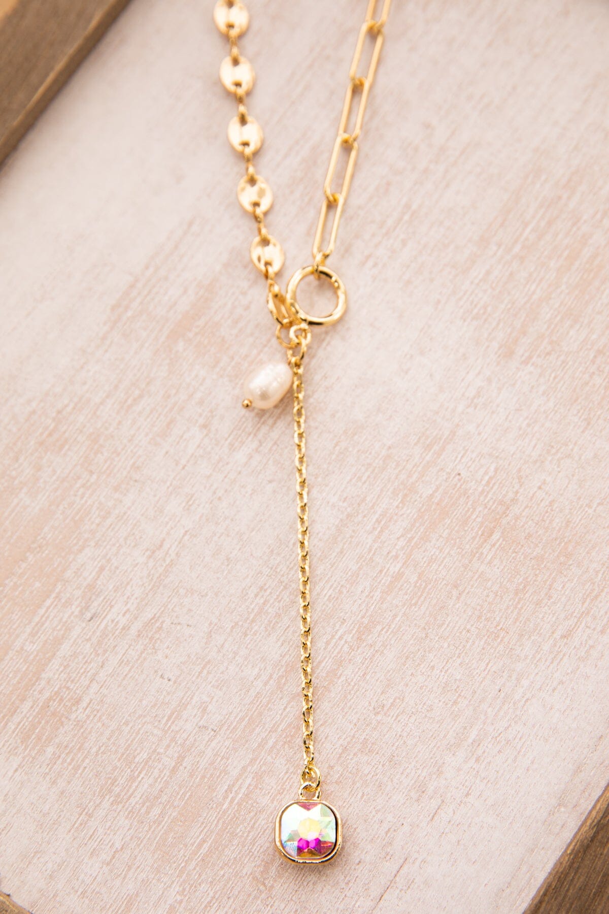 Gold Pearl and Rhinestone Necklace