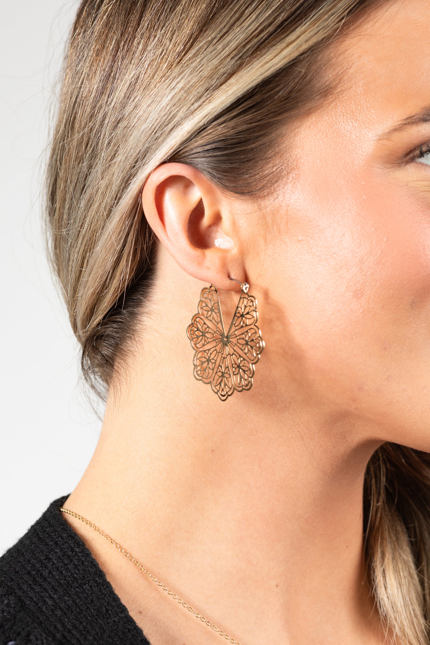 Gold Vintage Floral Laser Cut Hoop Earrings