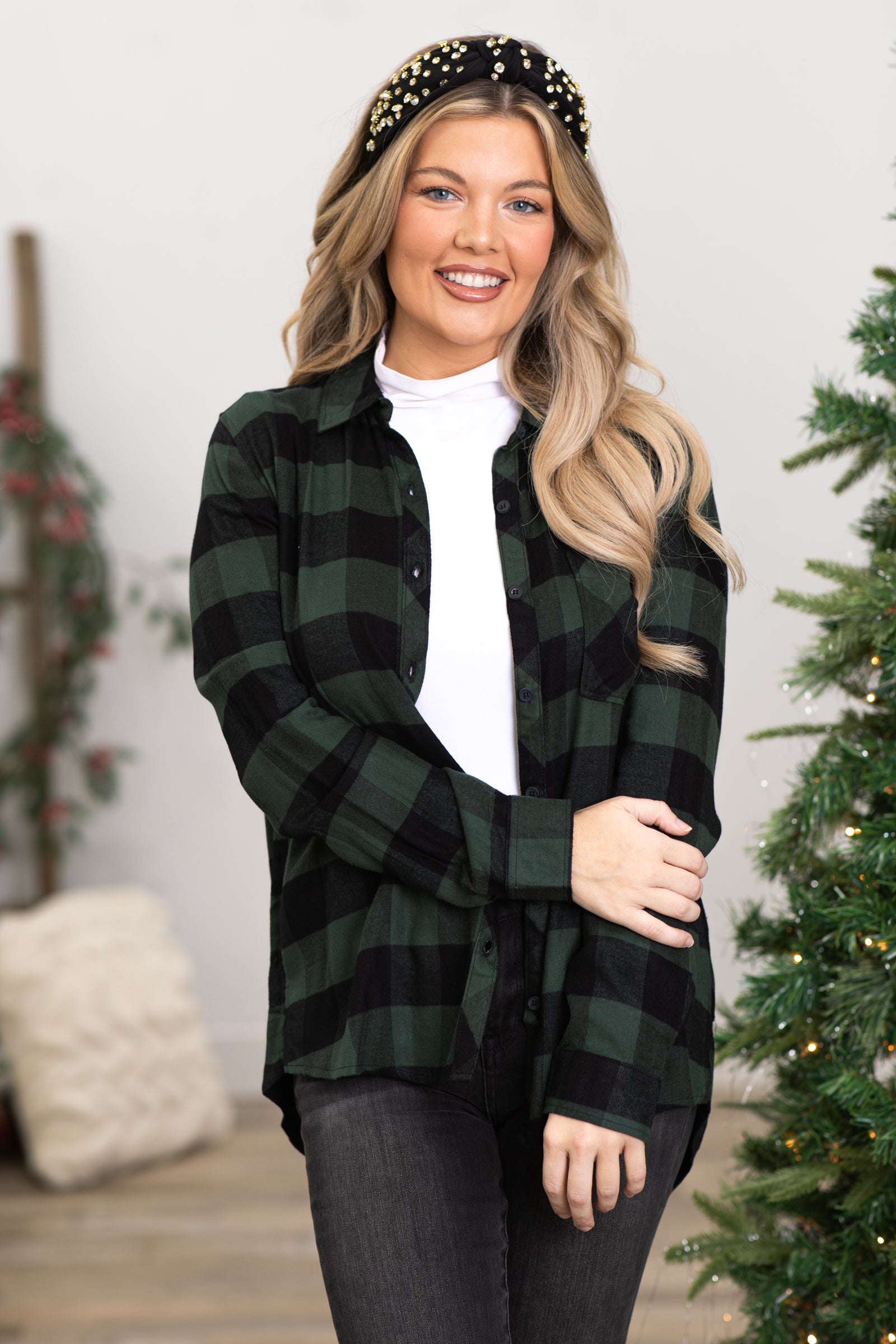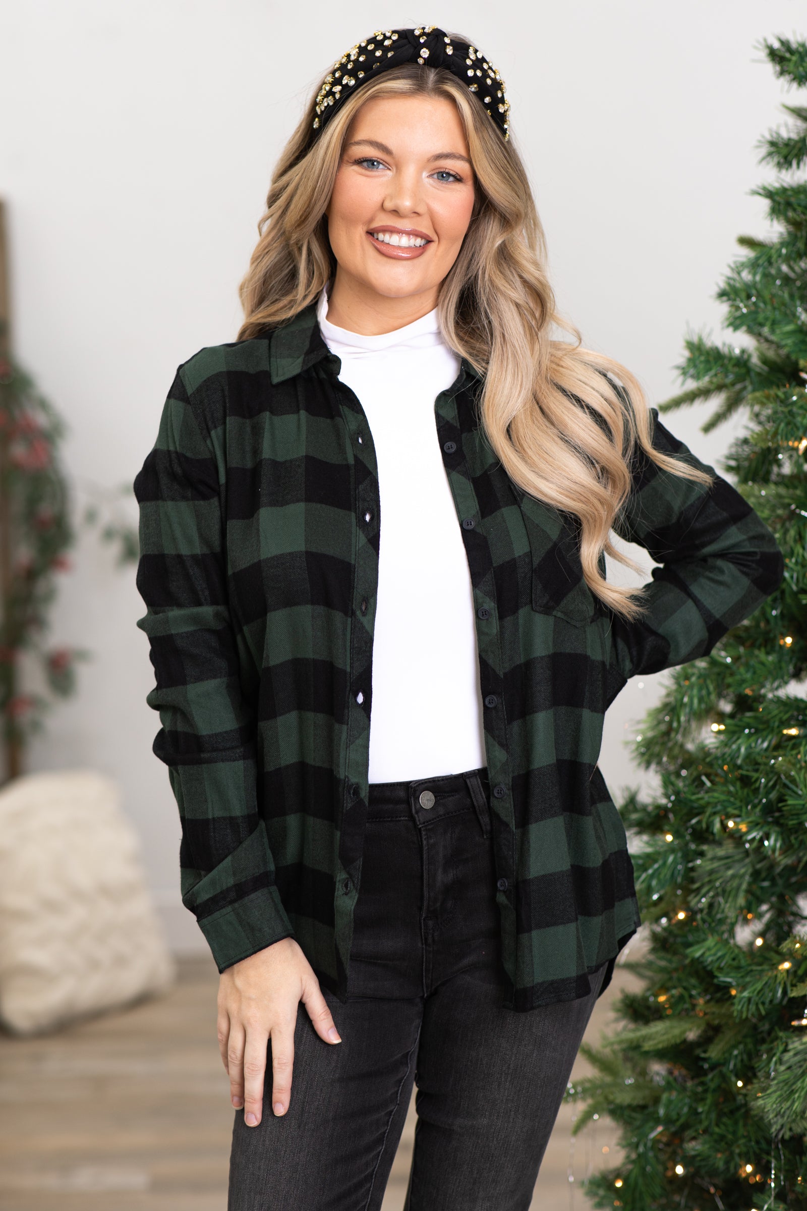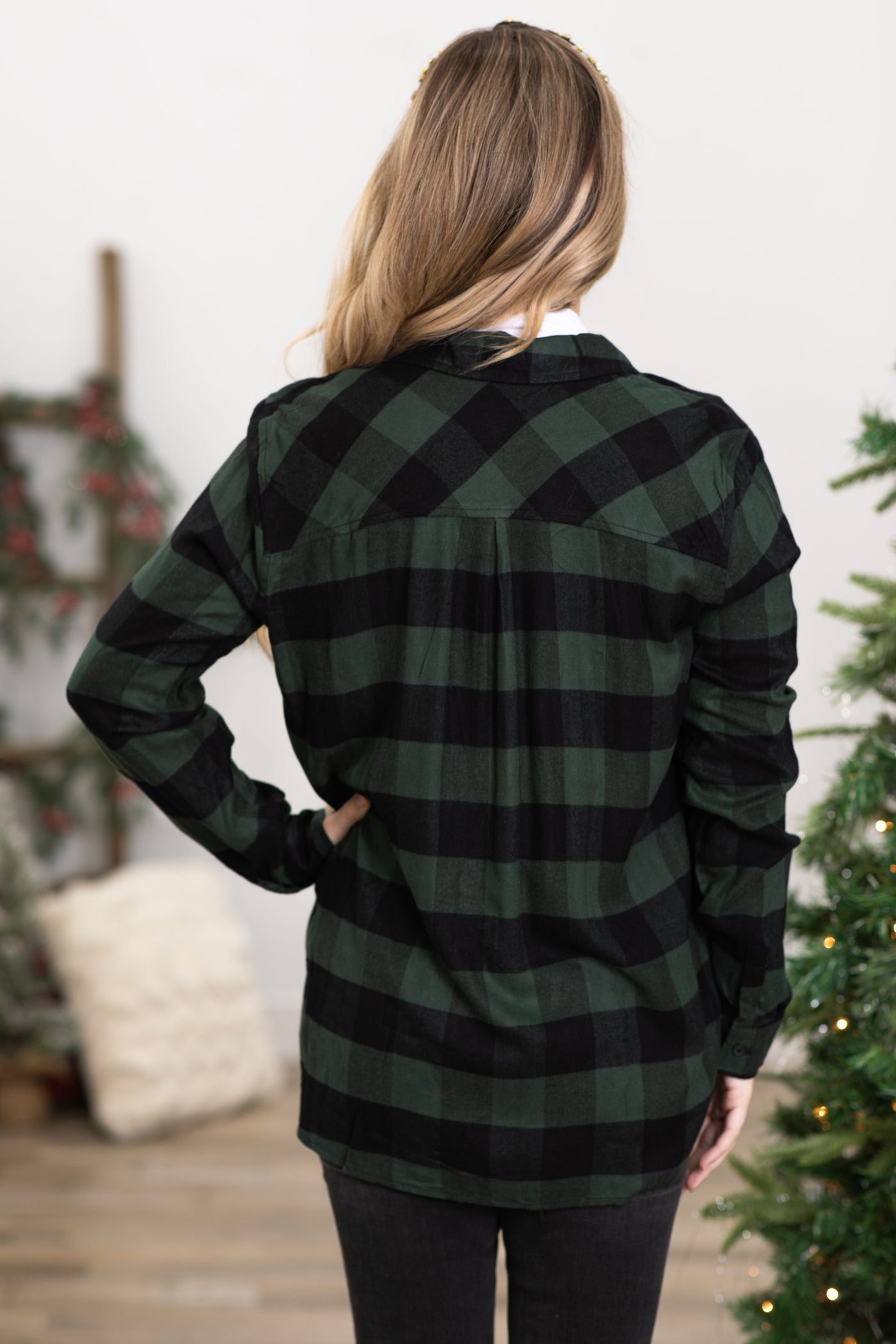 Green and Black Buffalo Plaid Button Up Top