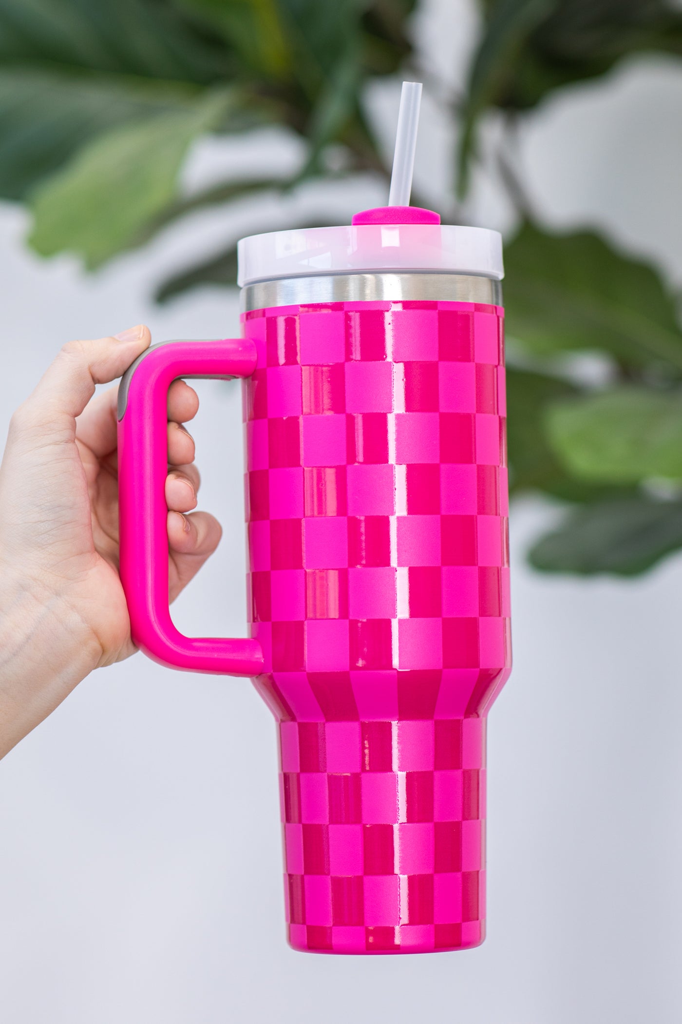 Hot Pink and Pink Checkered Tumbler