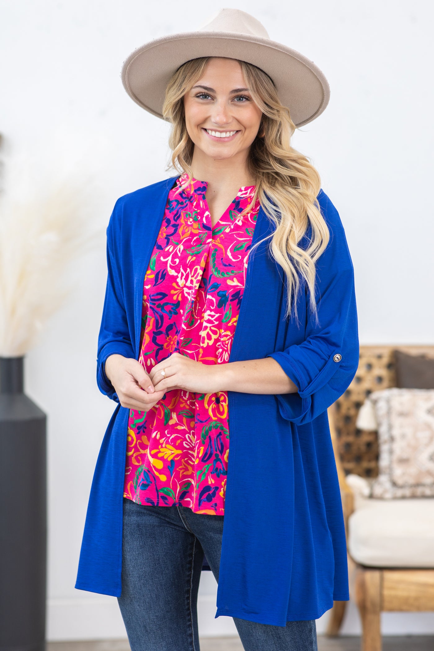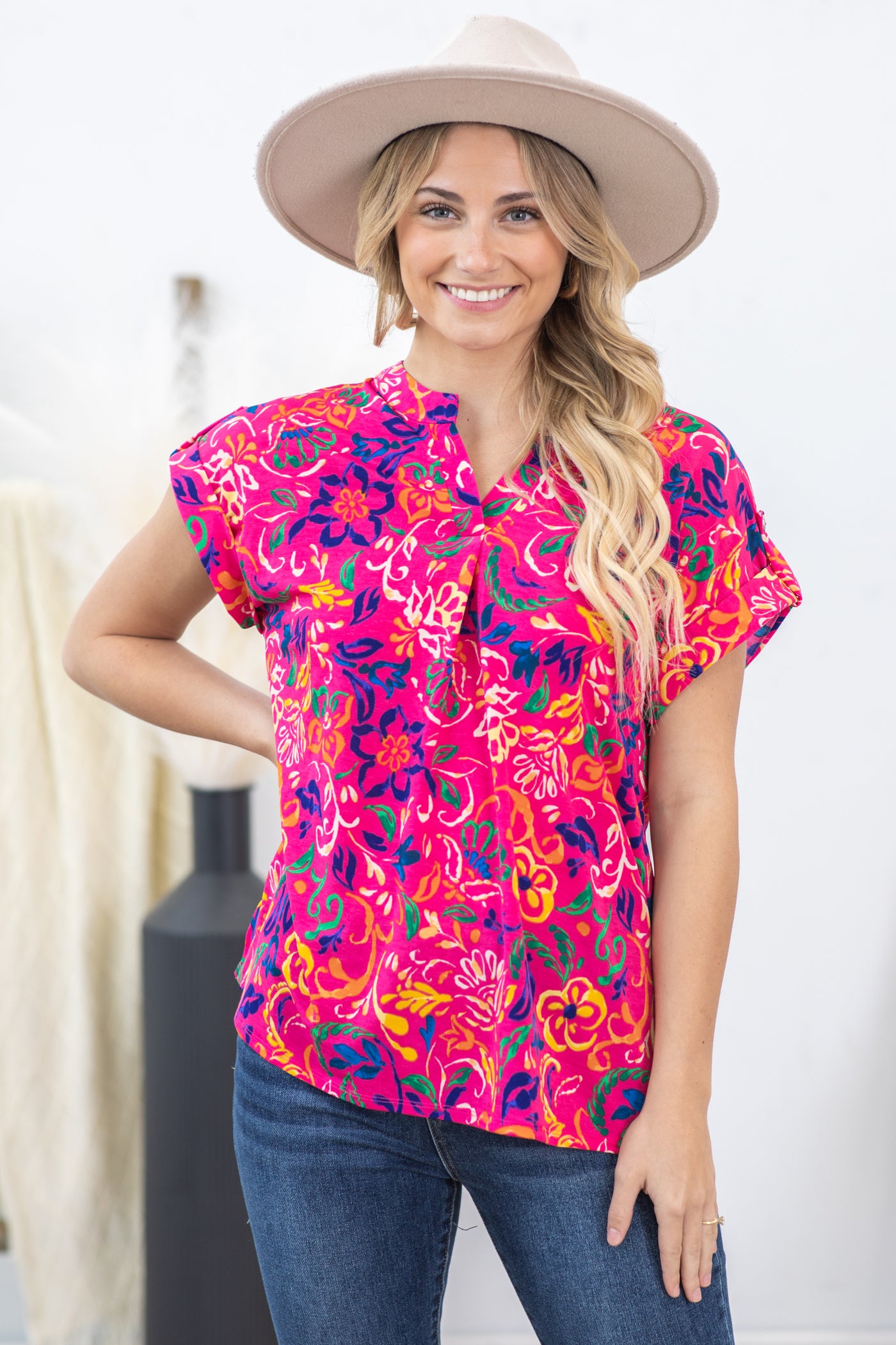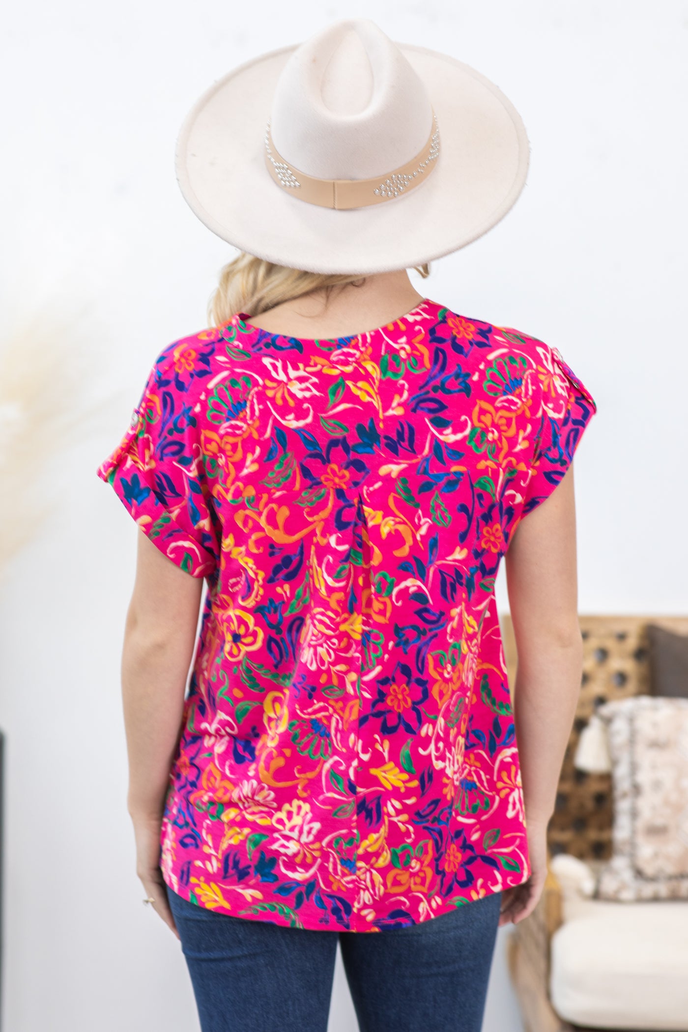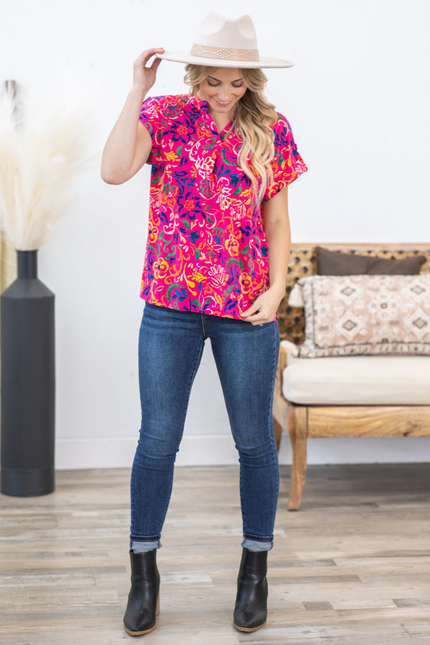 Hot Pink Printed Wrinkle Free Lizzy Top