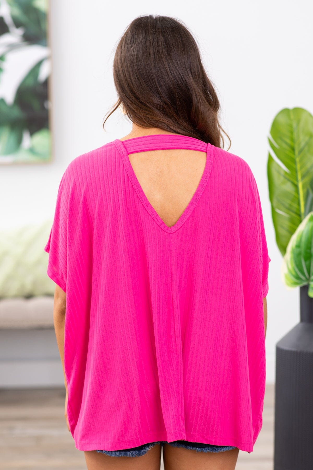 Hot Pink V-Neck Dolman Sleeve Back Cutout Top