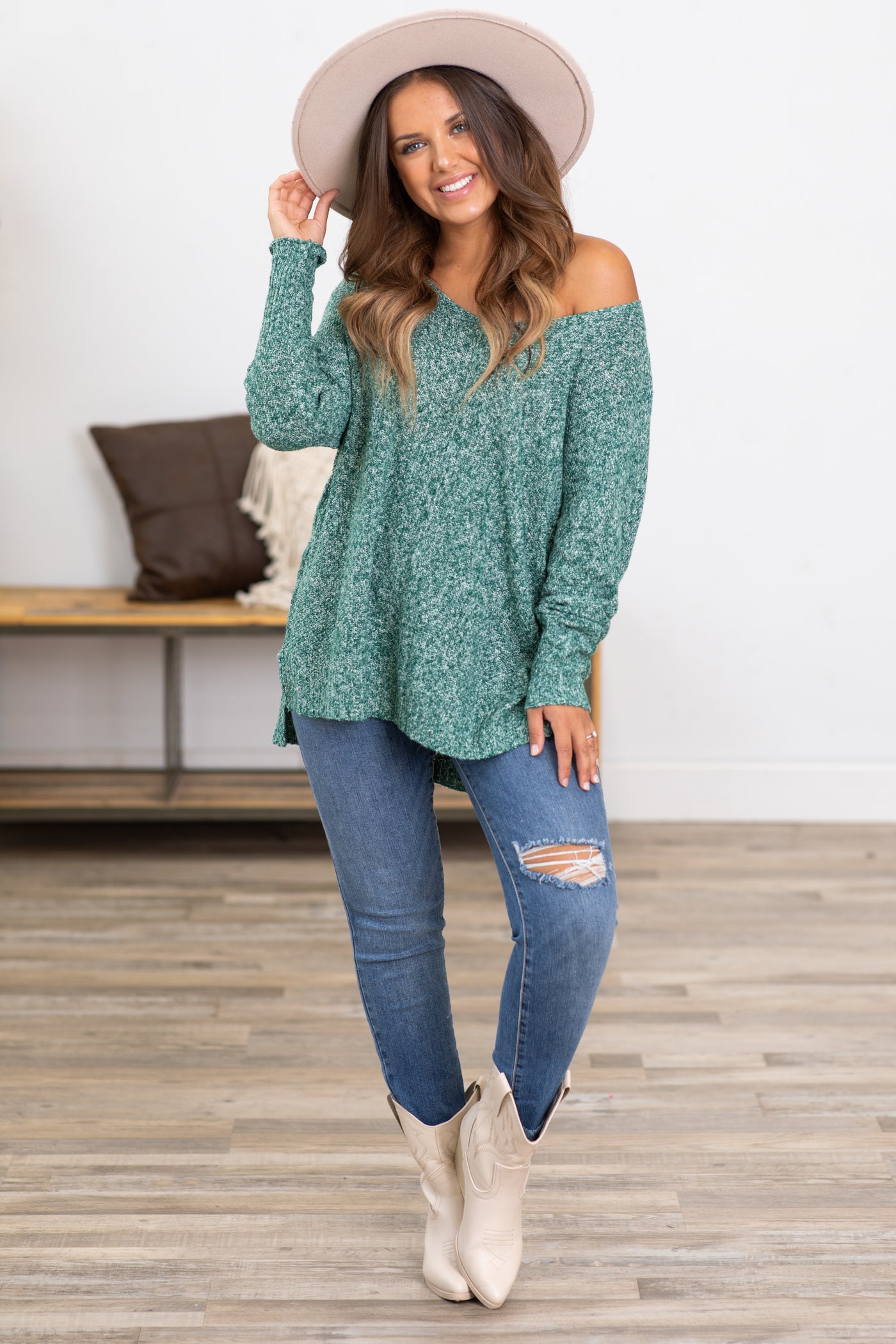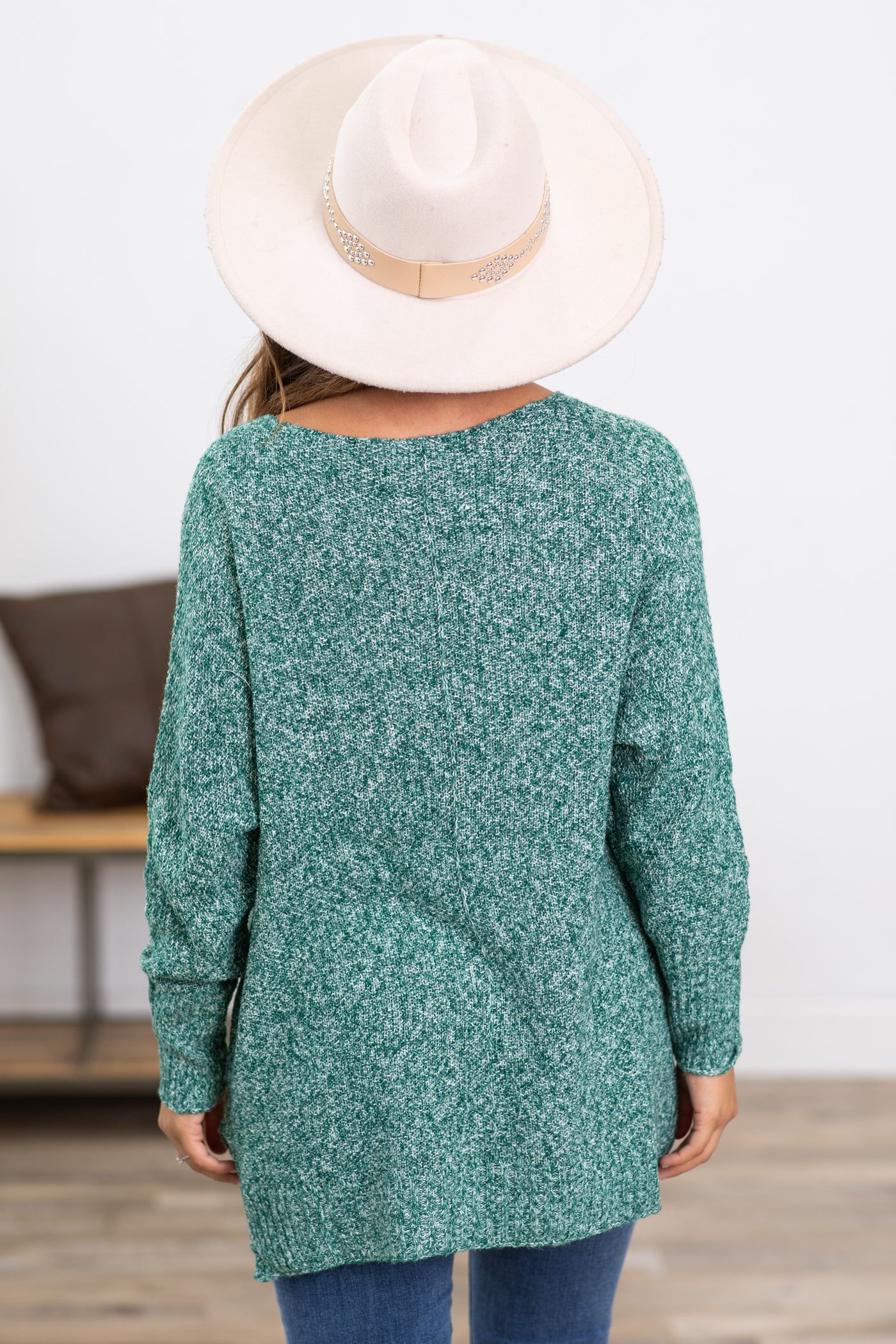 Hunter Green Melange Sweater With Front Seam
