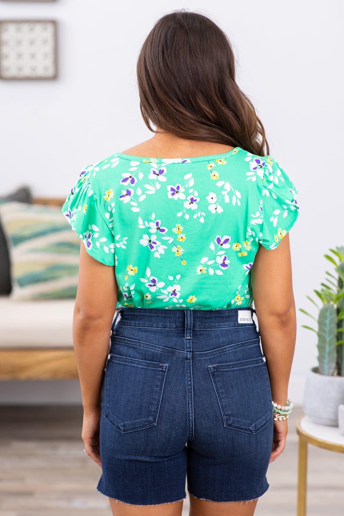 Jade and Purple Floral Cap Sleeve Top