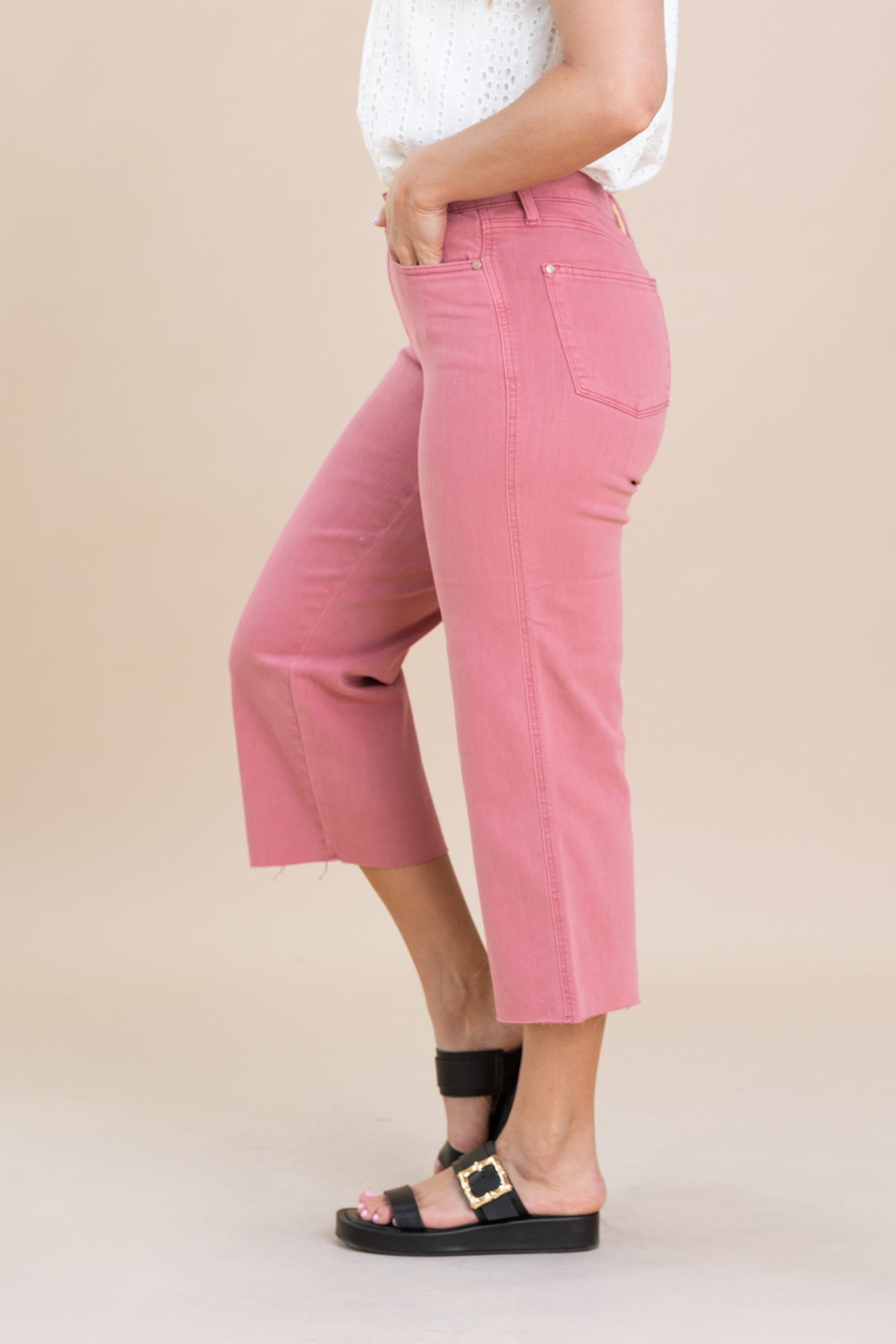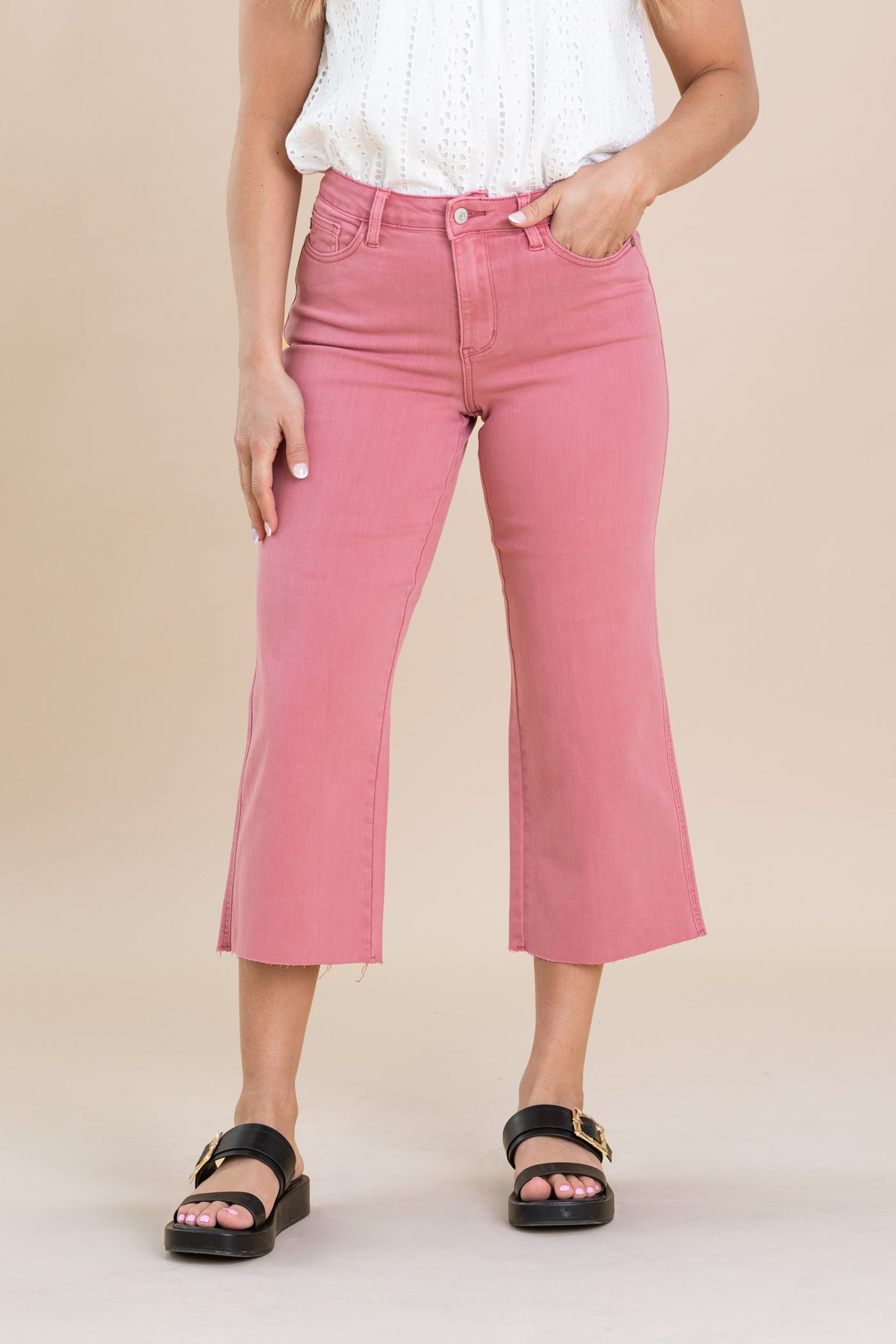 Judy Blue Blush Dyed Hem Crop Wide Jeans
