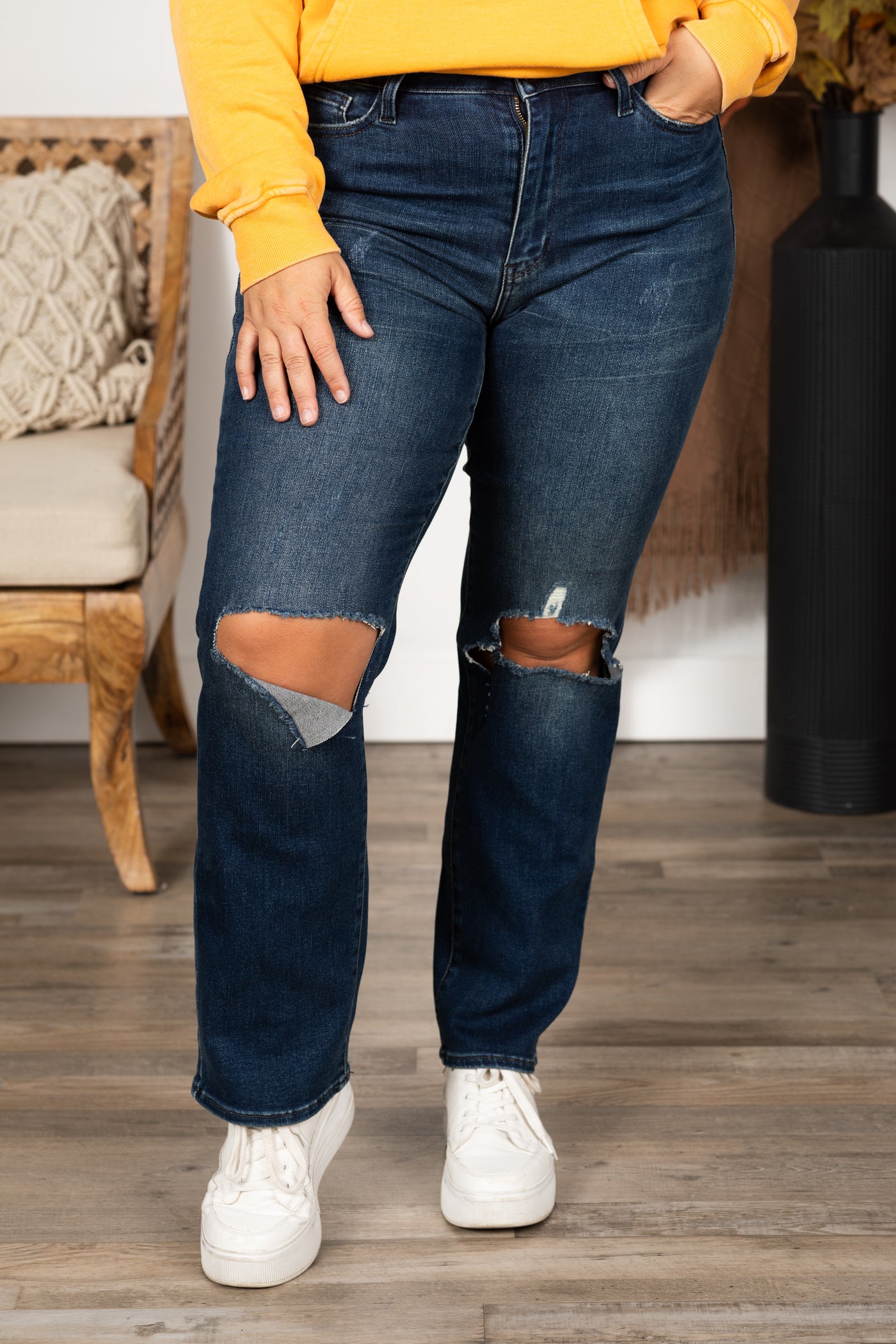 Judy Blue Dark Wash Ripped Knee Dad Jean