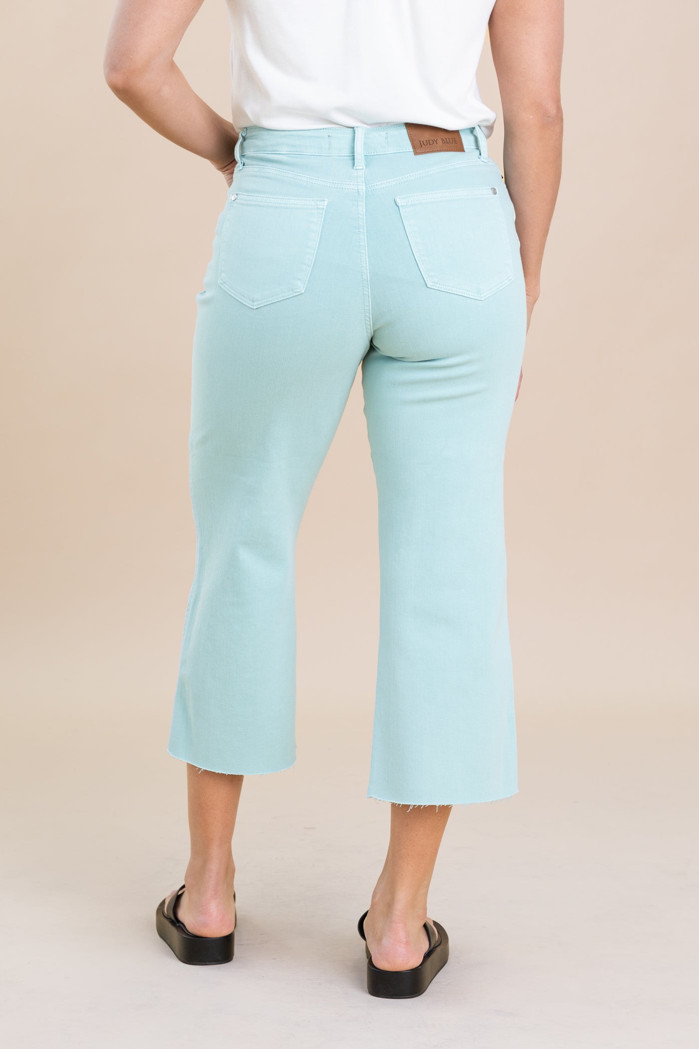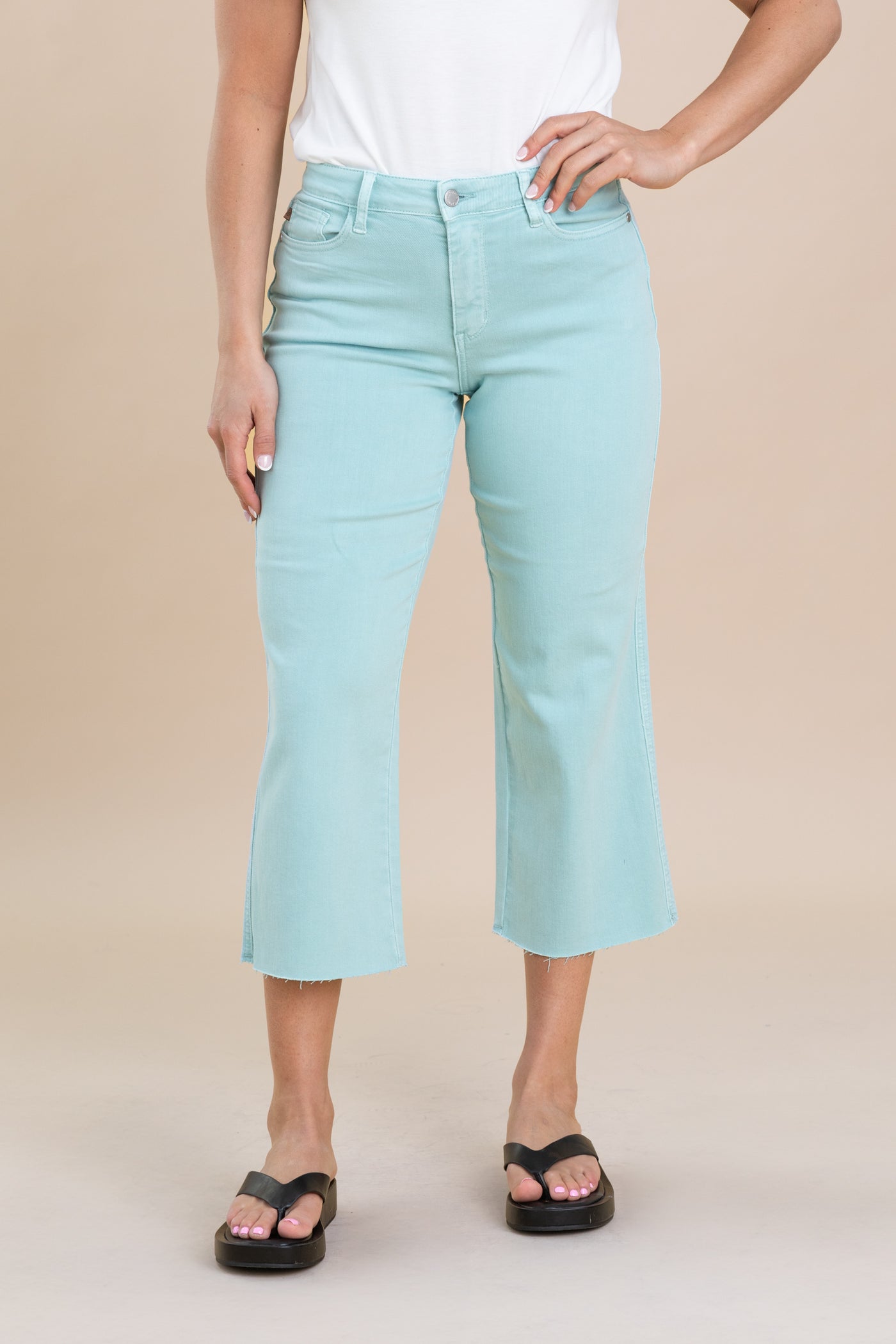 Judy Blue Light Mint Dyed Hem Crop Wide Jeans