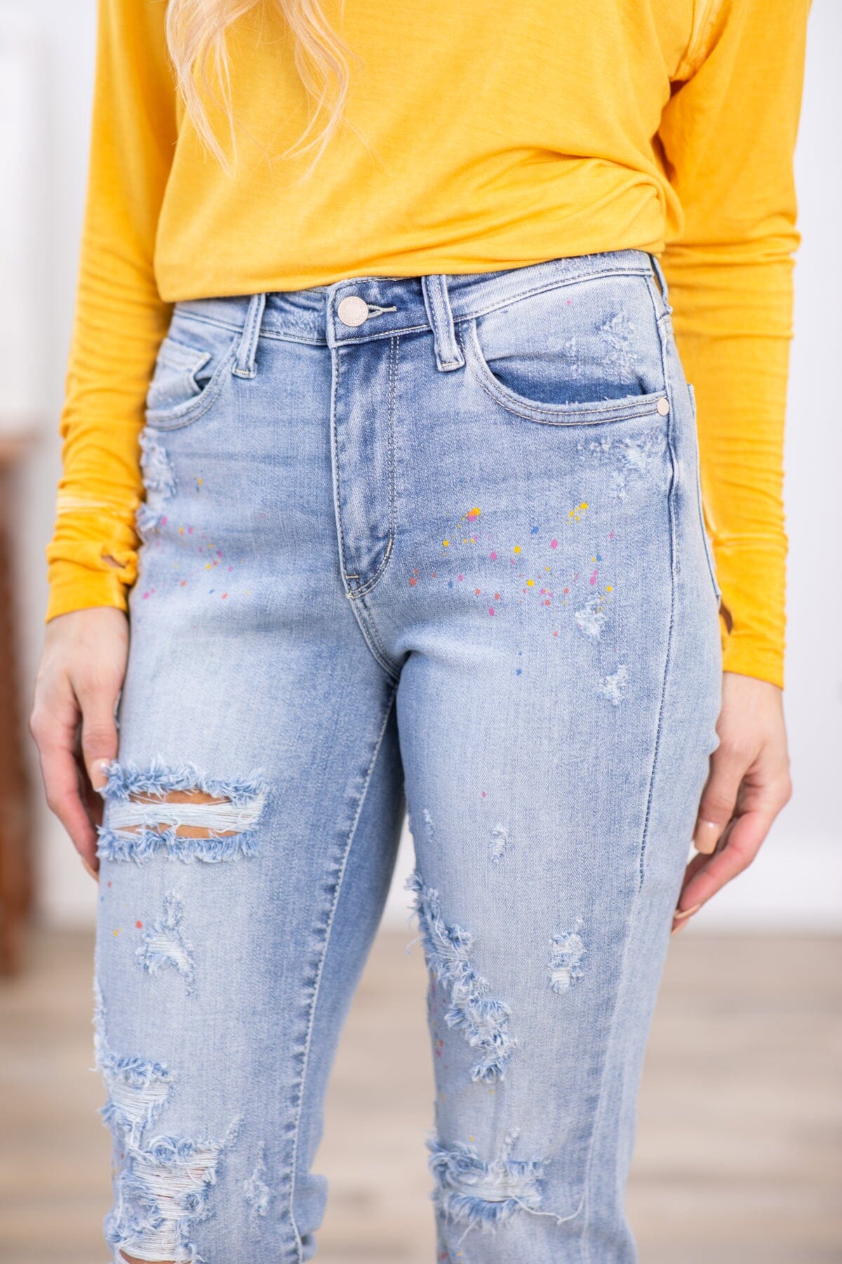Judy Blue Paint Splatter Boyfriend Fit Jeans