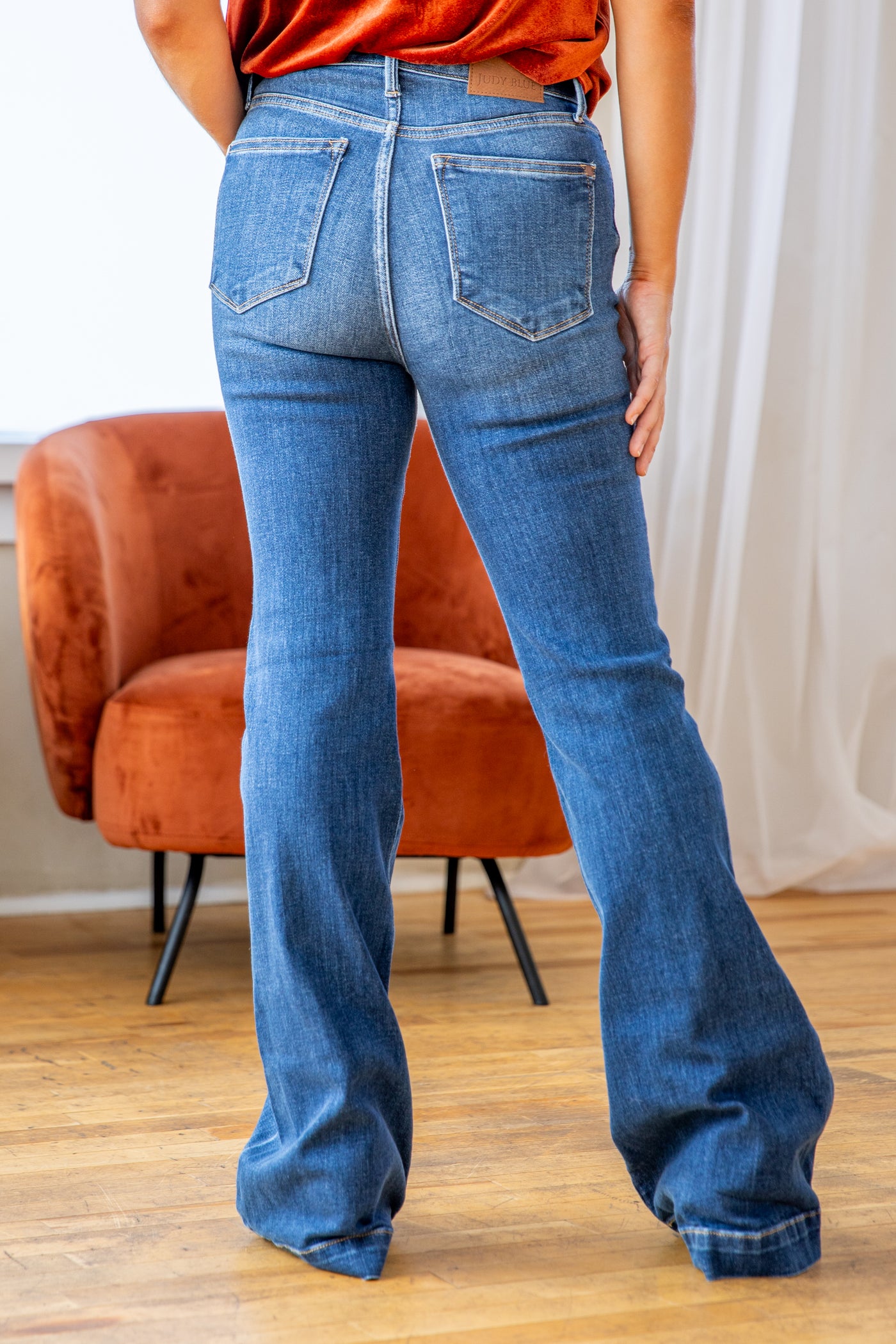 Perfect fit. Love the wash and classy hem. They are long but will look great with heels.