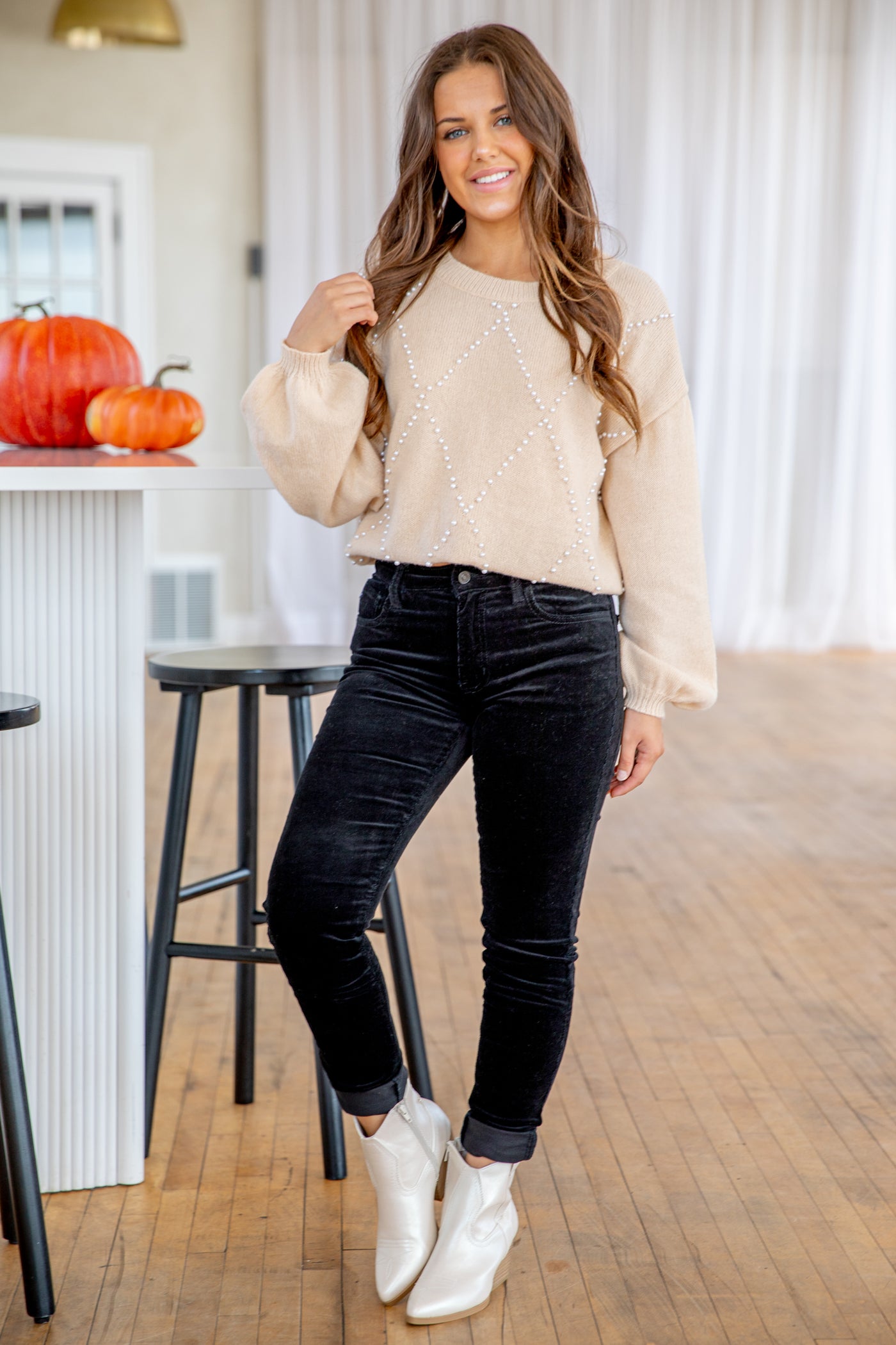 They are just as described. They are comfortable. I always size down in kancan jeans for a perfect fit. They shipped the day I purchased and I received them within a week. Great boutique and I will be buying from them again.