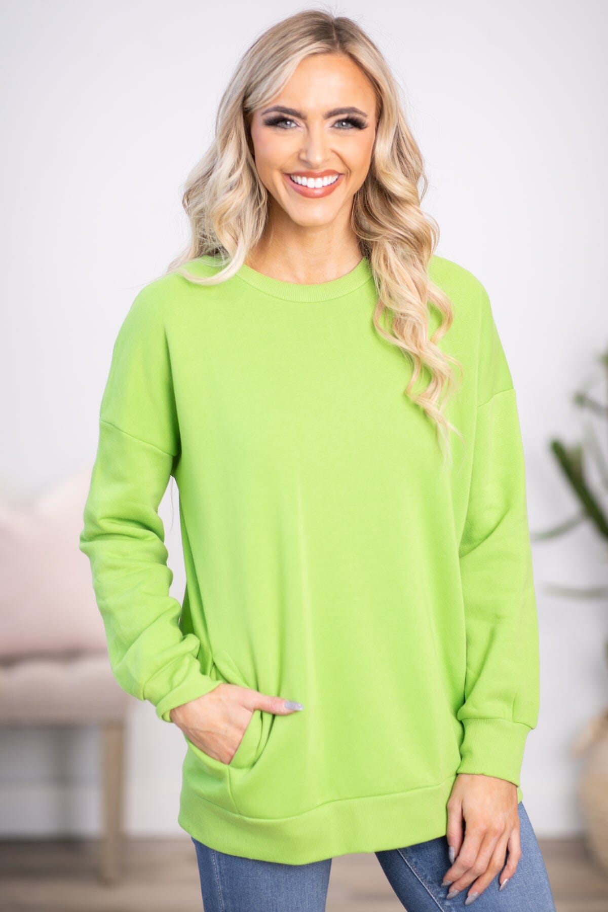 I love the crewneck sweatshirt with pockets. I ordered a large which is my usual size. Fit great, so soft and comfortable. Loved it so much I ordered two more.