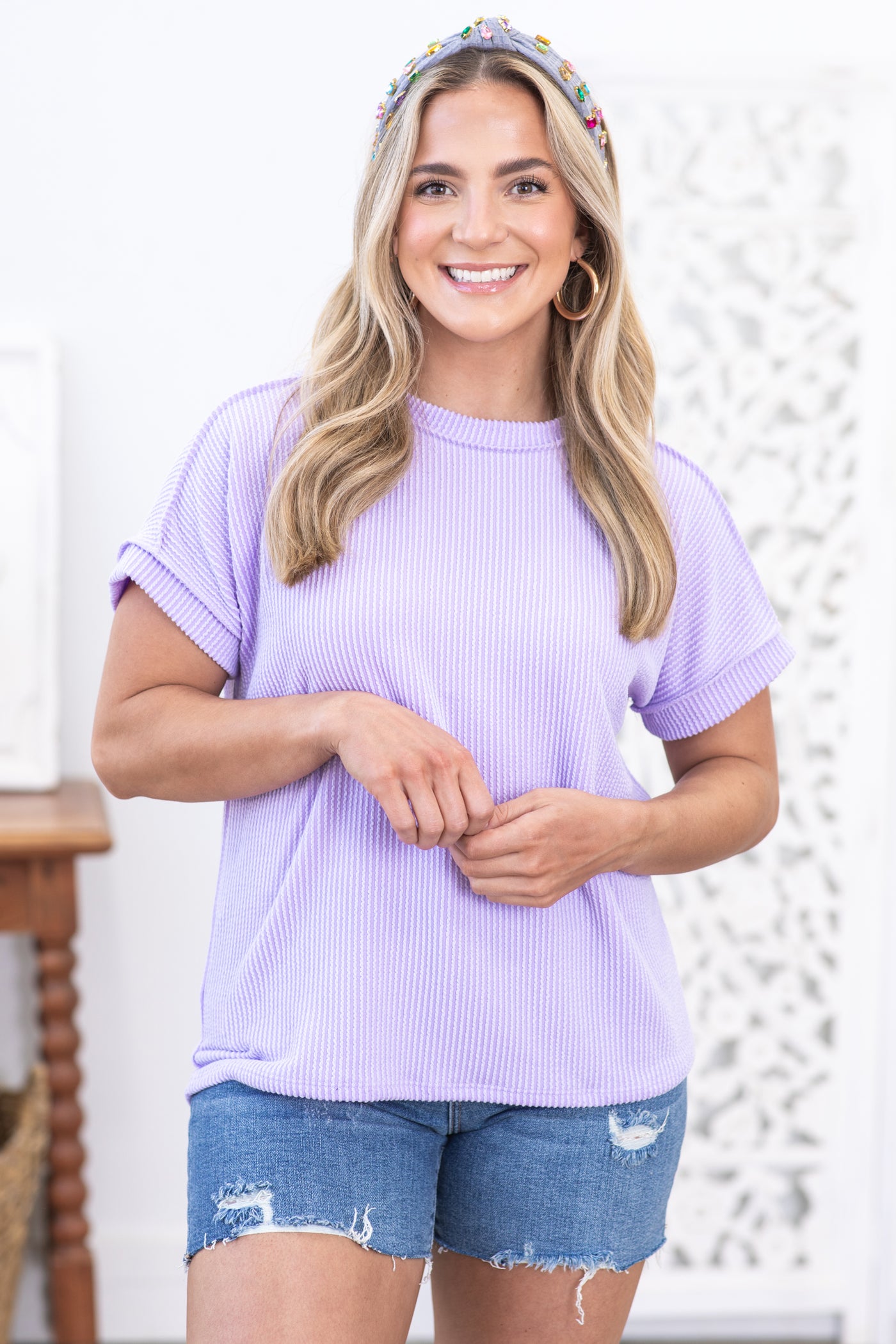 Lavender Ribbed Textured Knit Top