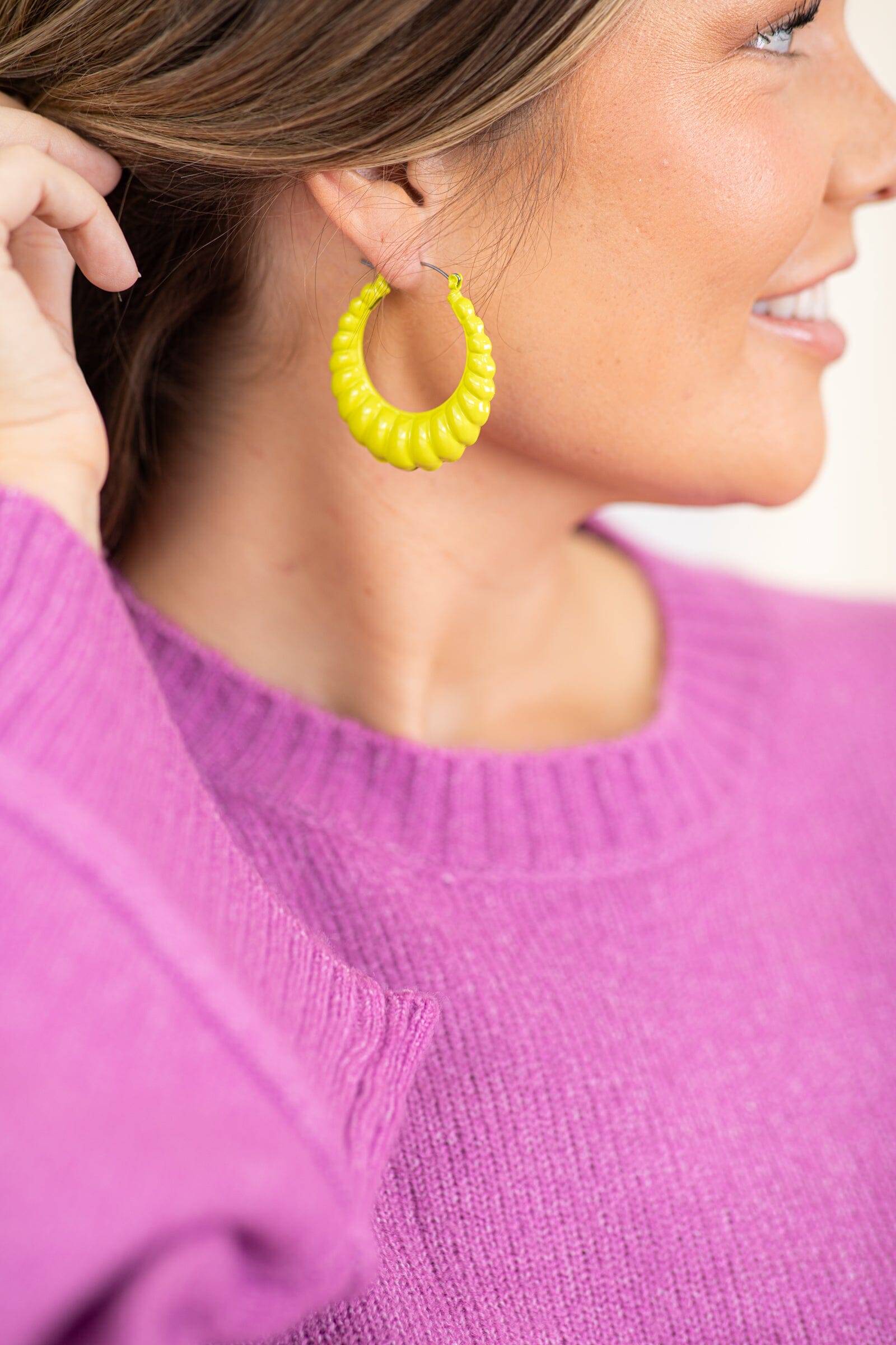 Light Olive Ridged Hoop Earrings