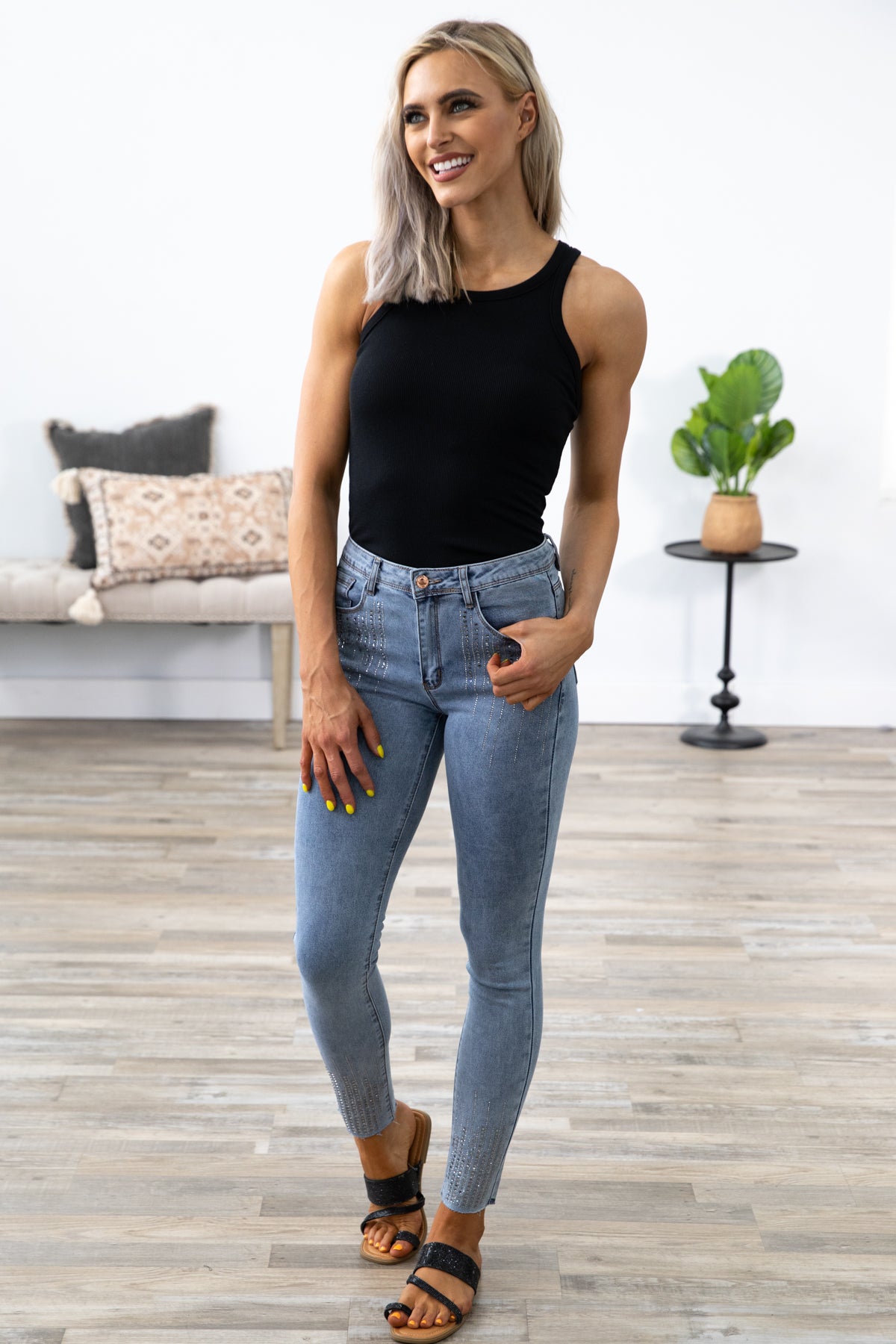I followed the details and sized up 2 sizes and they fit perfect. Wore these rhinestone jeans to fireworks with a sequin flag tank and got so many compliments!