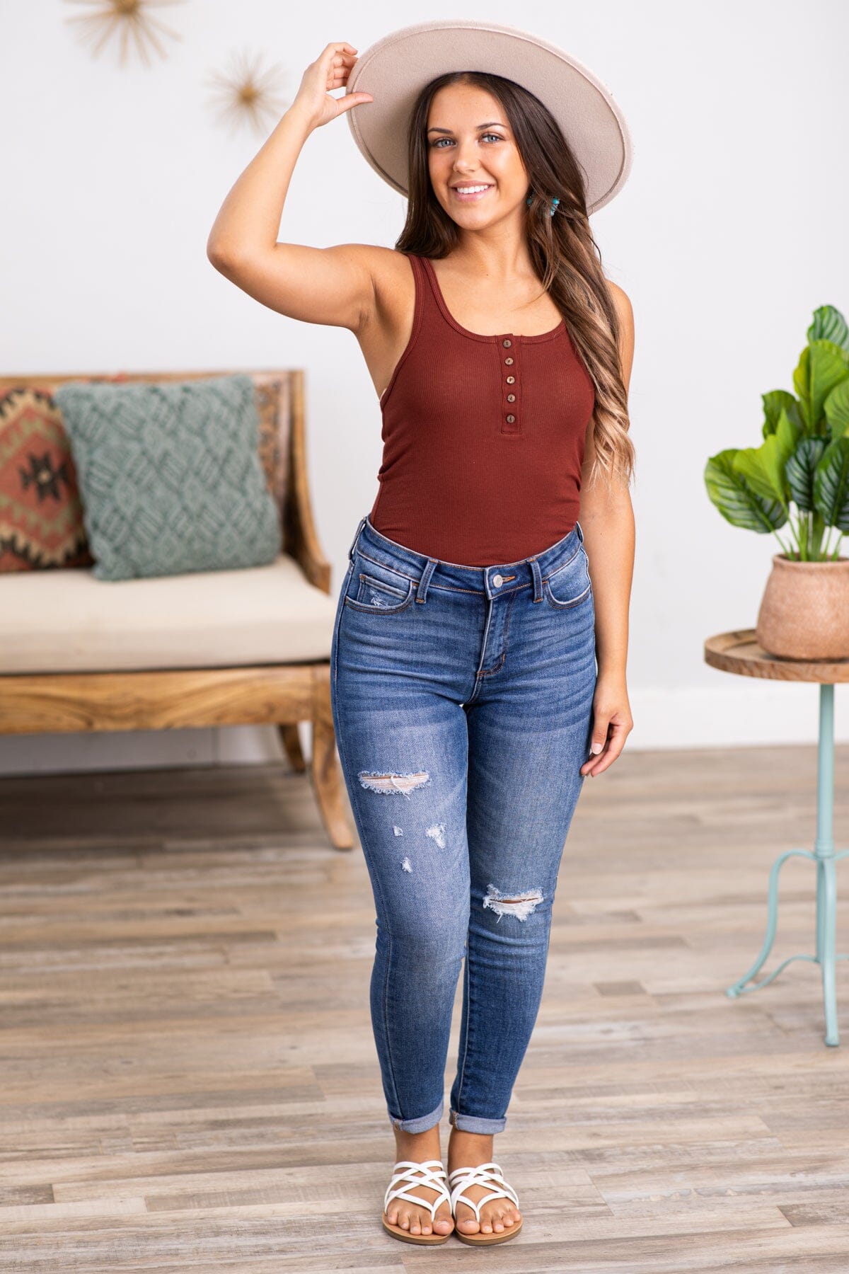 Maroon Henley Tank