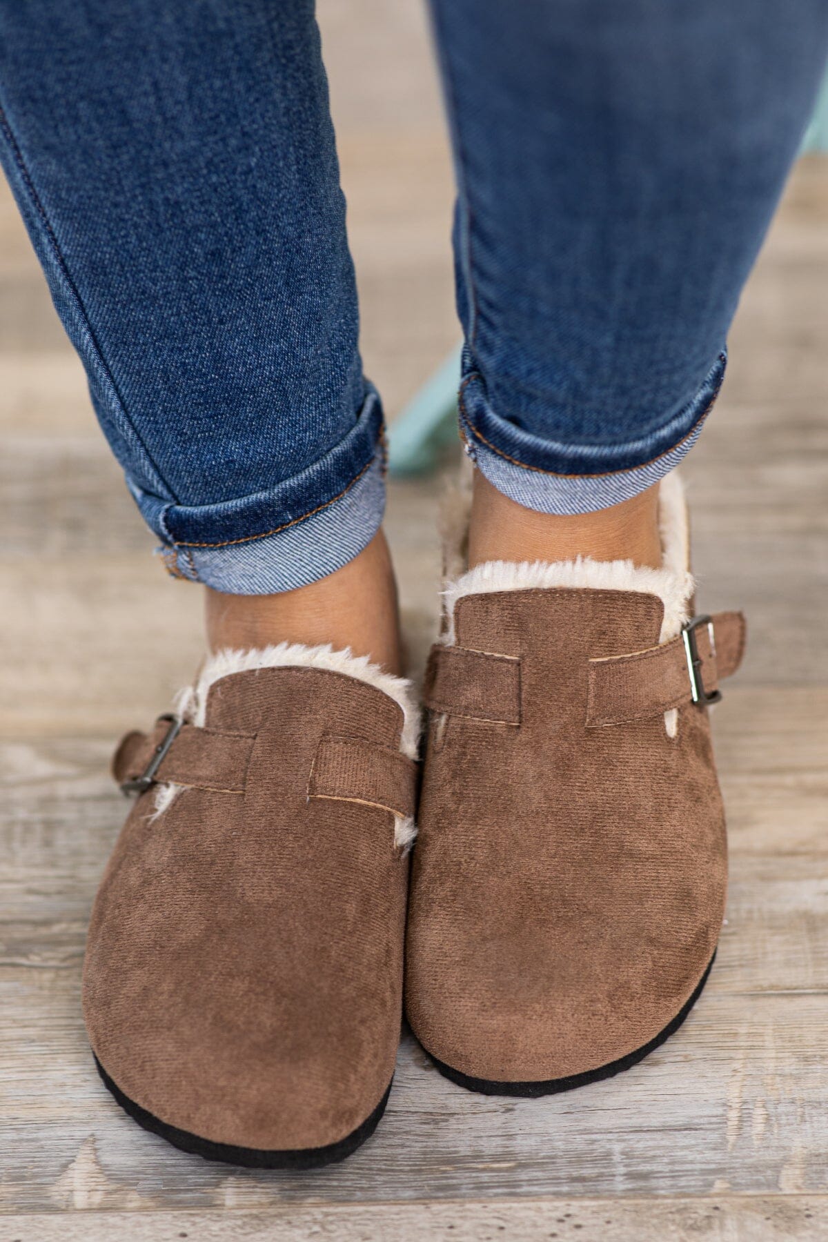 Mocha Faux Fur Lined Slip On Clogs