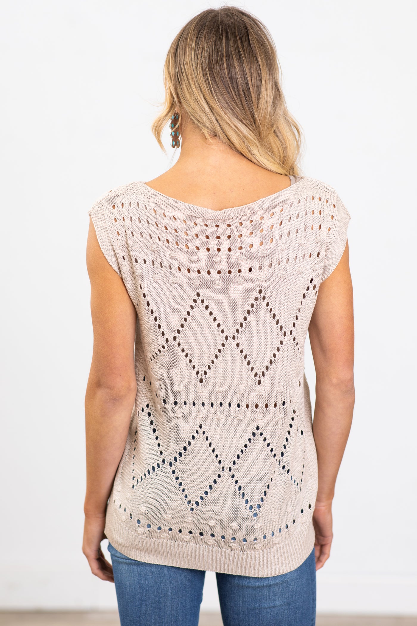 Mocha Pointelle Cap Sleeve Lightweight Sweater