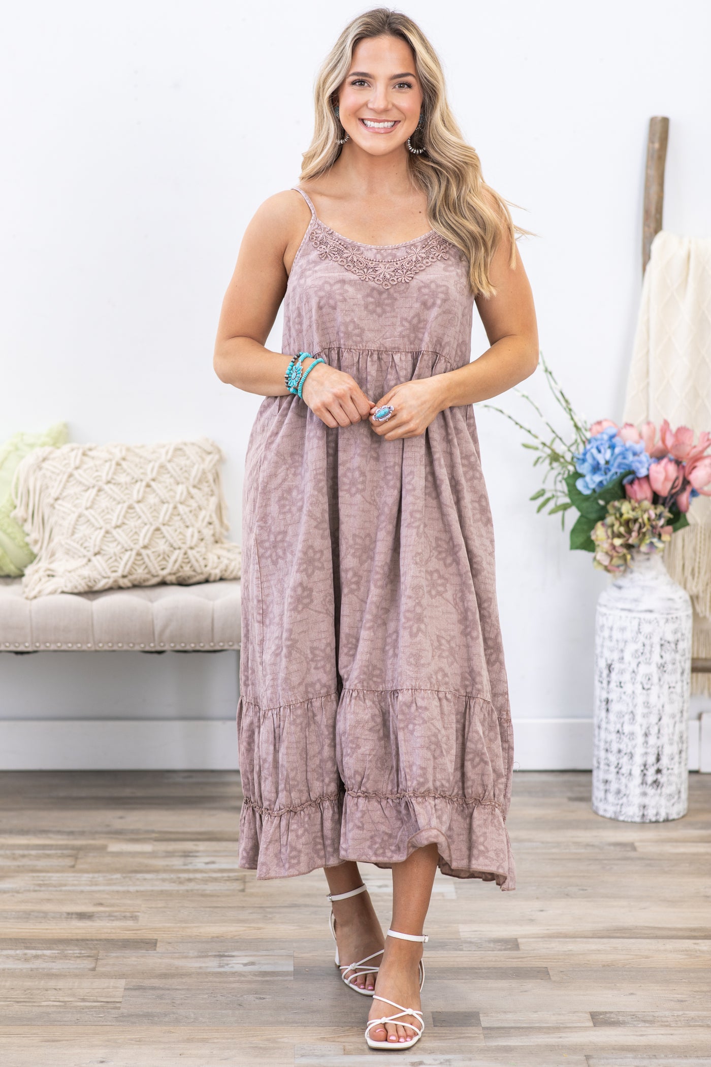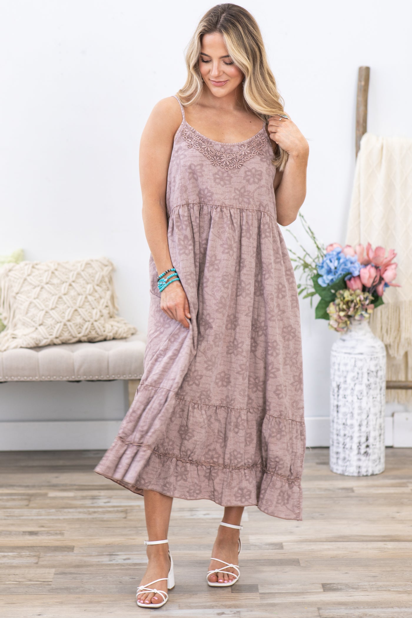 Mocha Textured Woven Mineral Wash Cami Dress