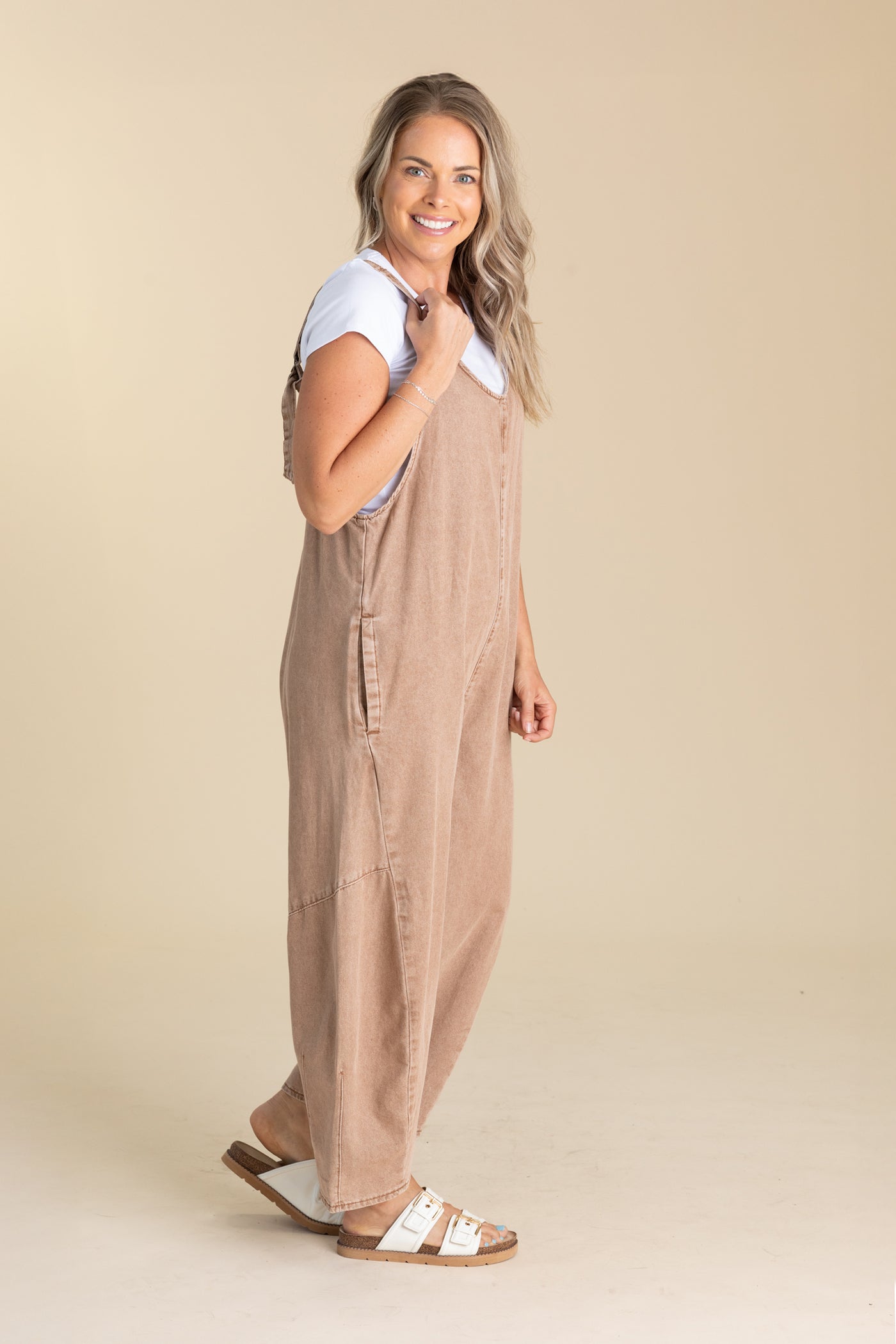 Mocha Washed Denim Jumpsuit