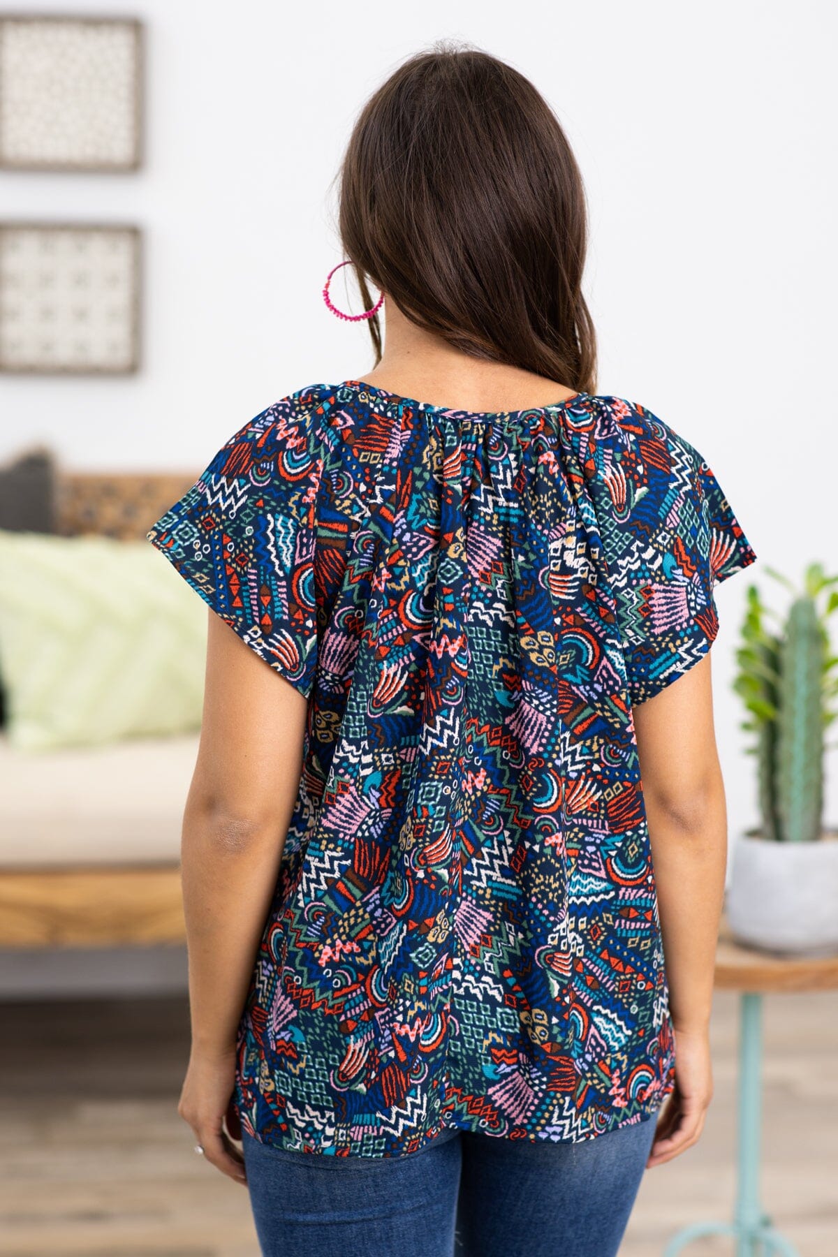 Navy and Red Multicolor Paisley Print Top