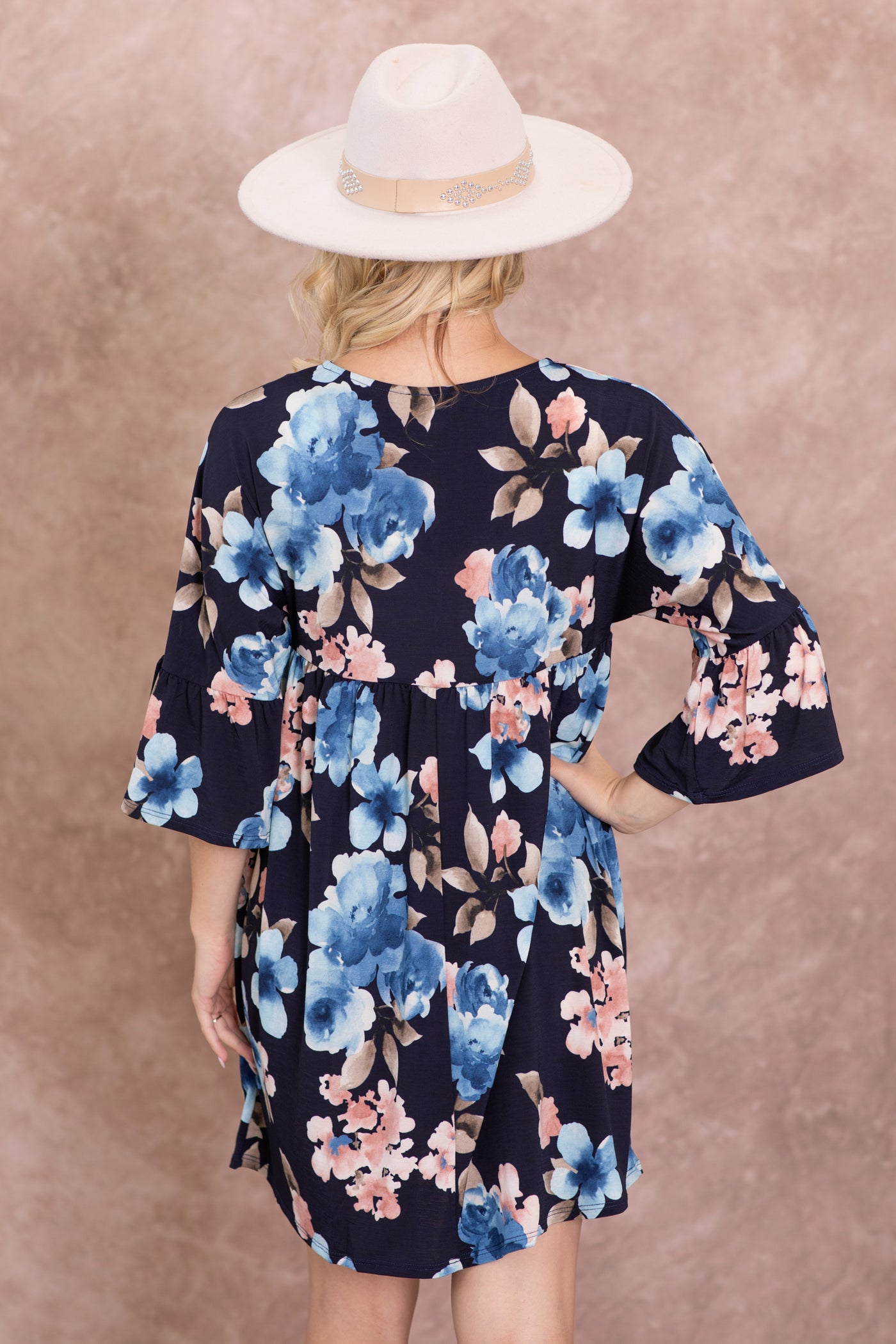 Navy Floral Wrinkle Free Dress