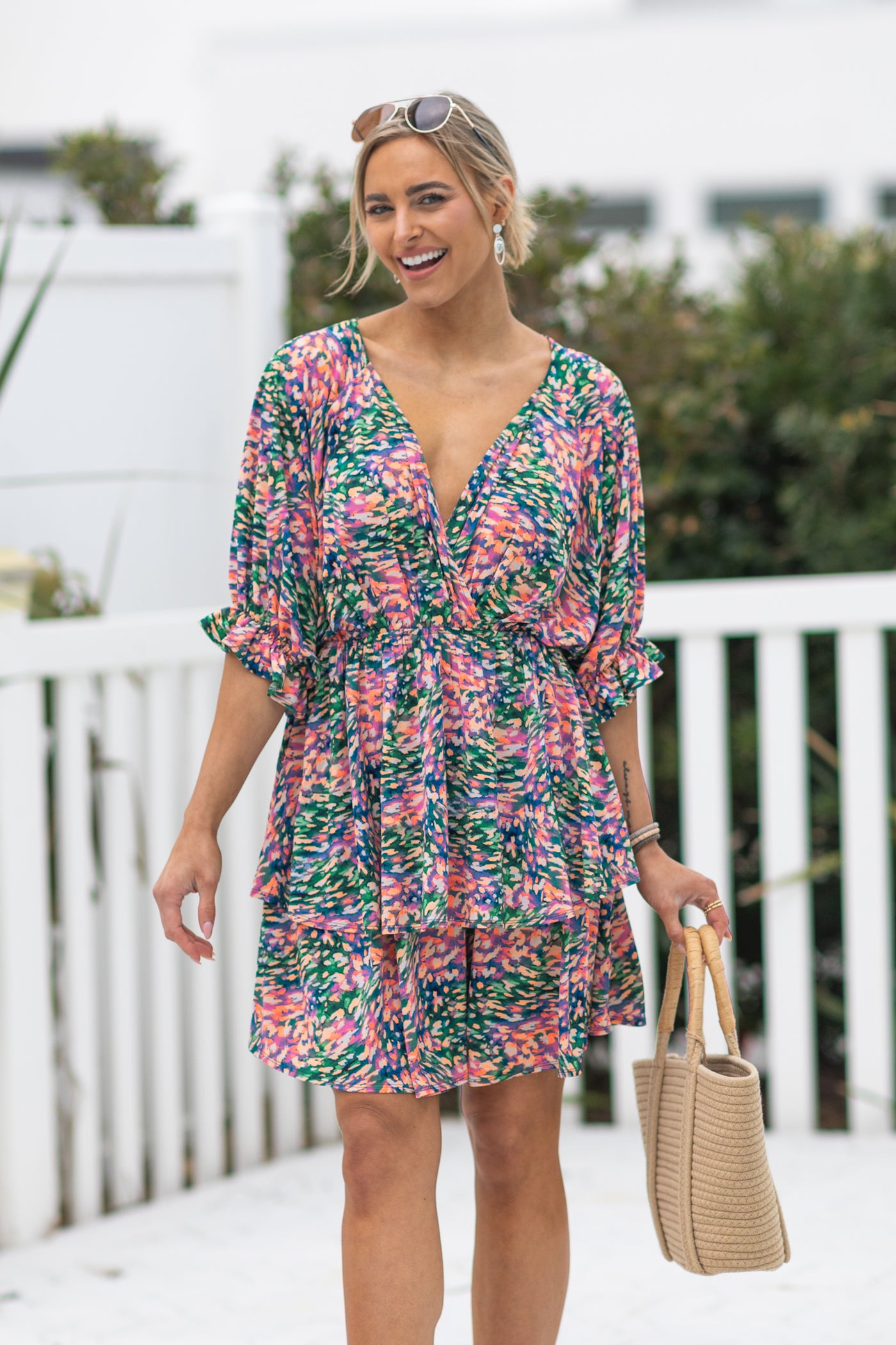 Neon Orange Multicolor Ruffle Dress