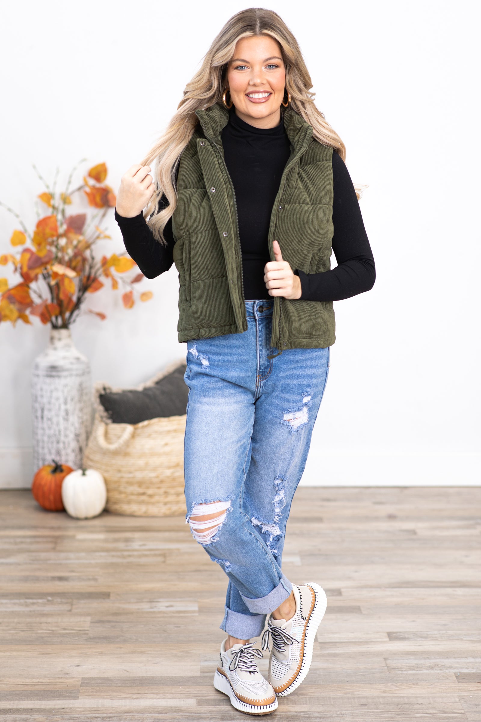 This vest is so cute! The color of it is beautiful, a nice rich olive color! Nice and puffy. Haven't worn it yet to know warmth, but waiting for a cold day to do so!