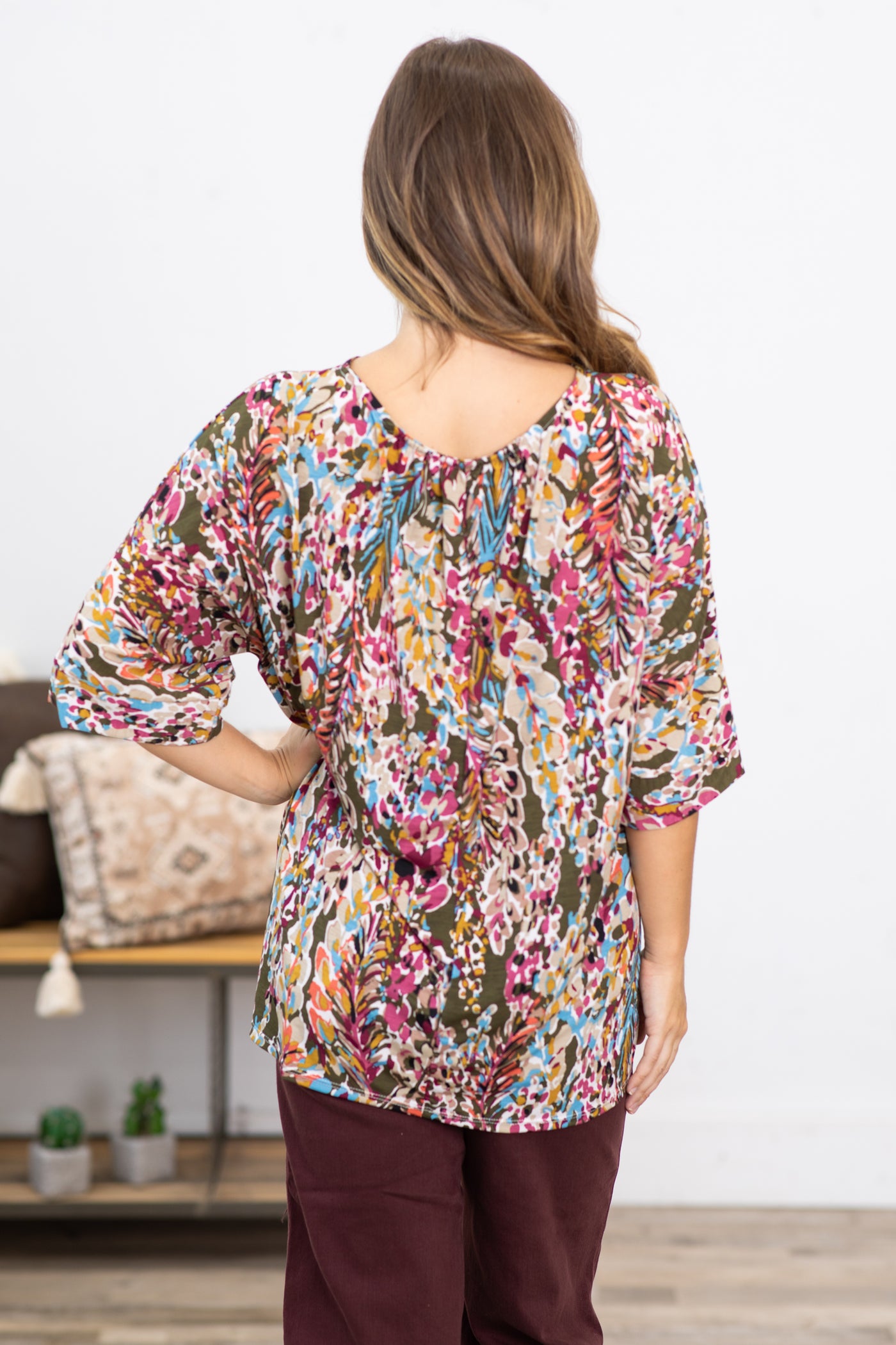 Olive Multicolor Floral Print Top