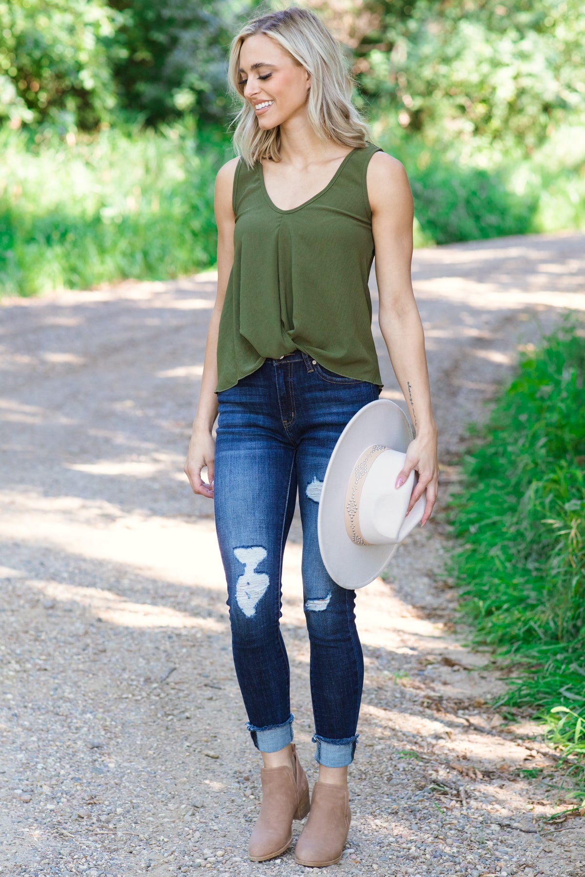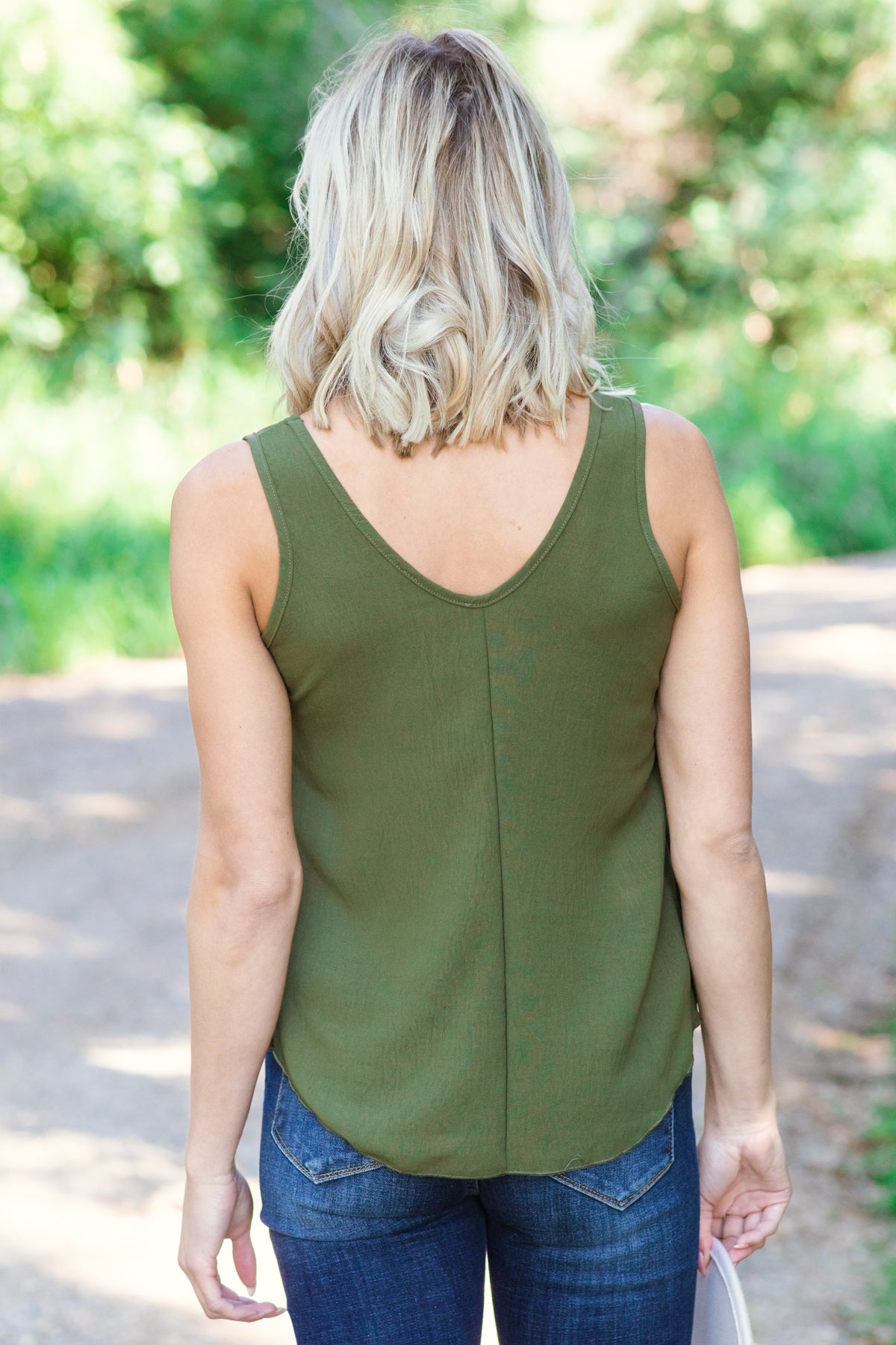 Olive Twist Hem V-Neck Tank
