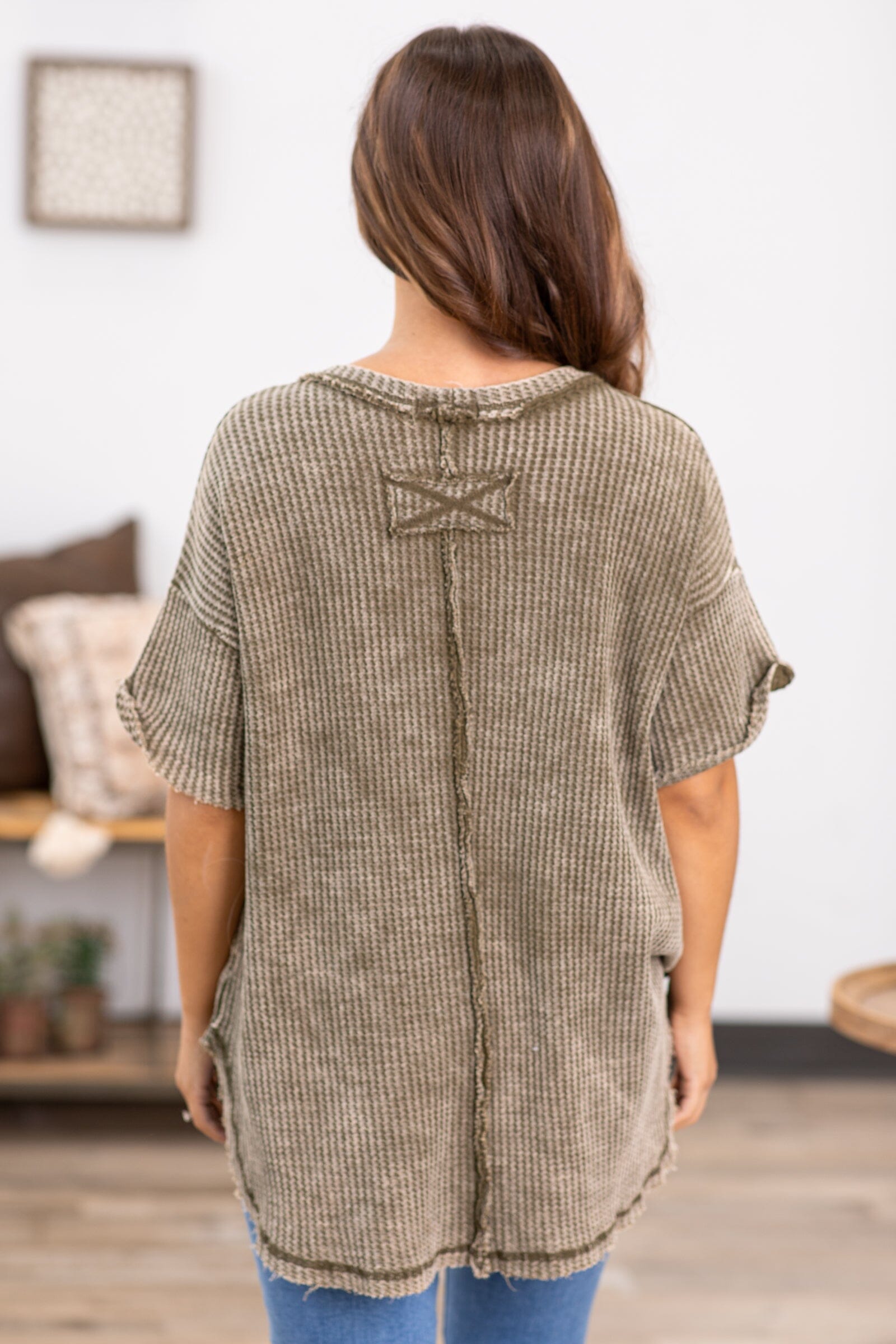 Love this waffle knit top! So comfy and soft. And the color is amazing!