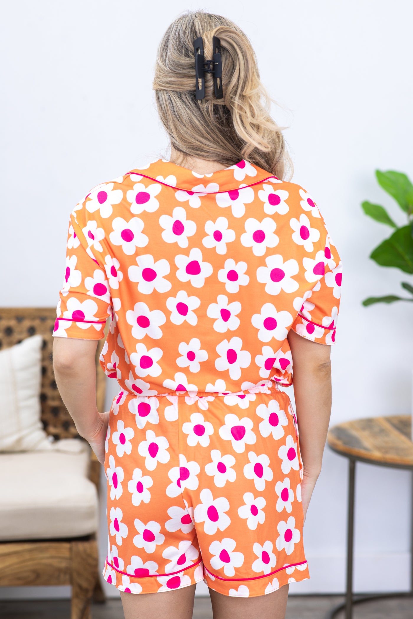 I love the bright colors in this pajama set! The top is pretty big (I wear a small and ordered a small), but then the bottoms are super tight around the waist! I kept them since they were on a final sale, and did alter the top a bit to fit better! I rolled the shorts, and that seemed to help.