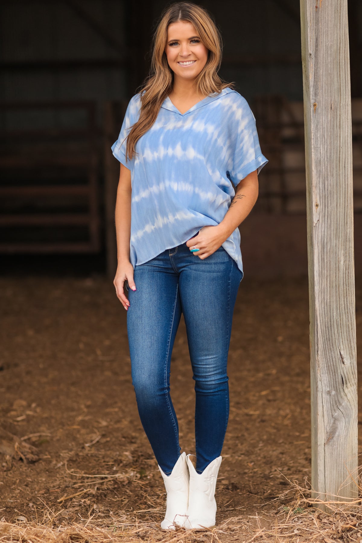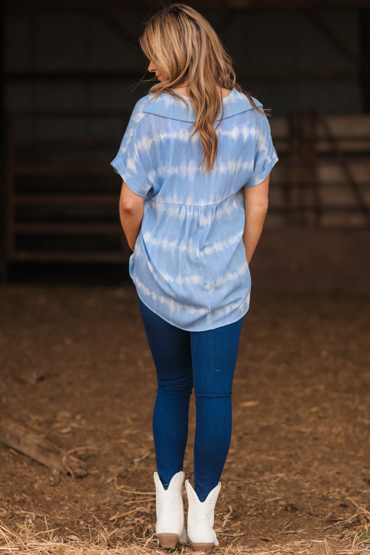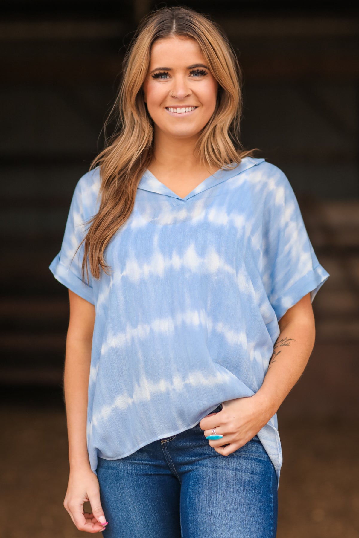 Pastel Blue Tie Dye Cuffed Sleeve Top