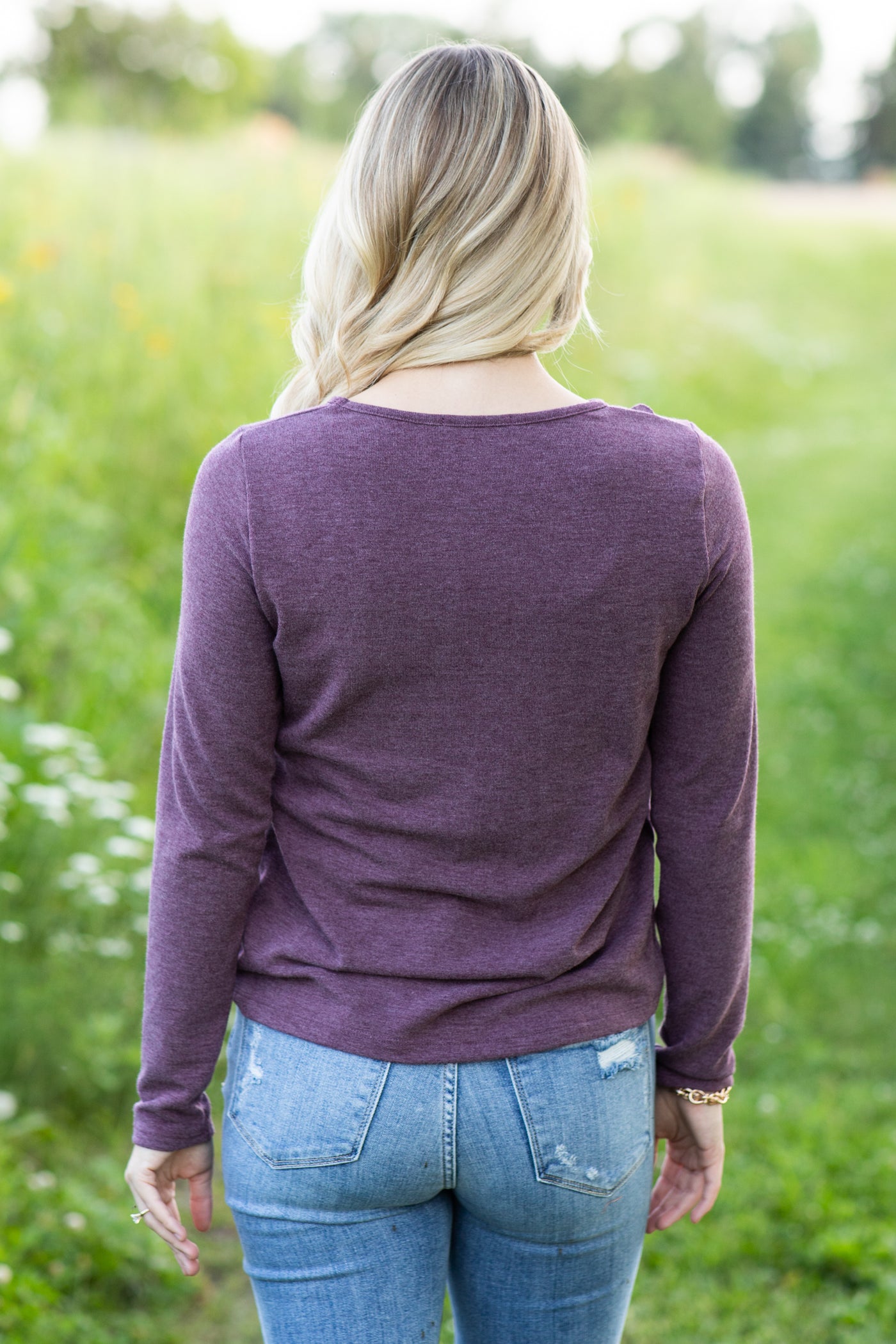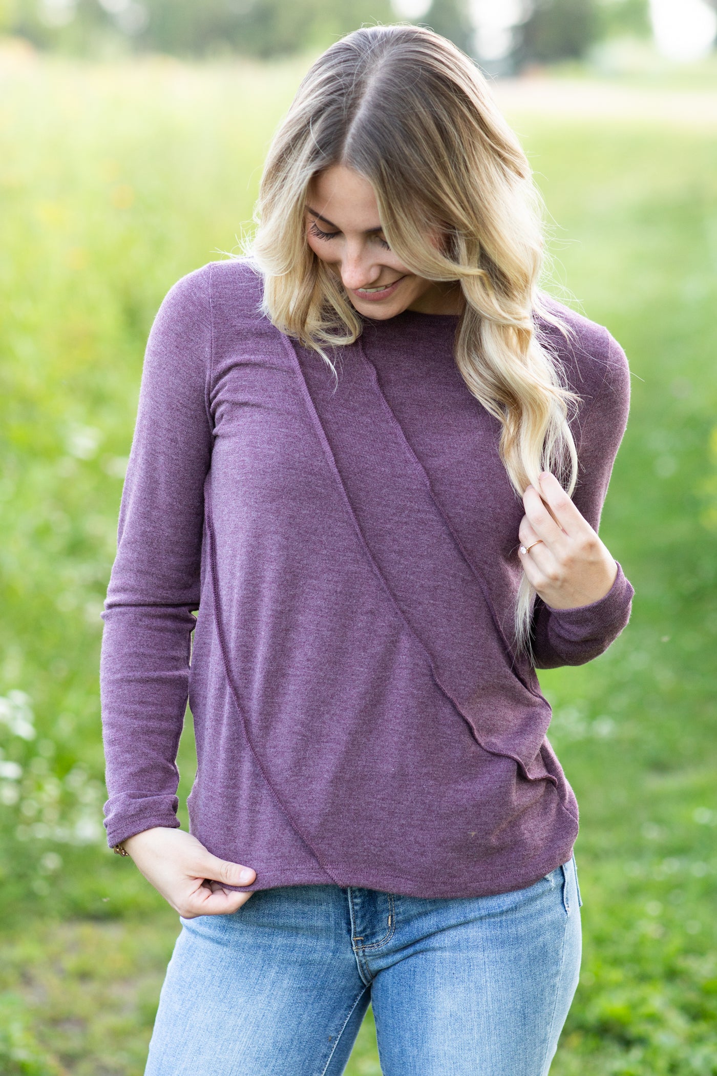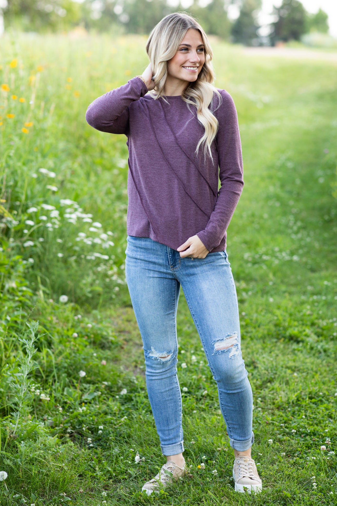 Plum Reverse Seam Long Sleeve Knit Top