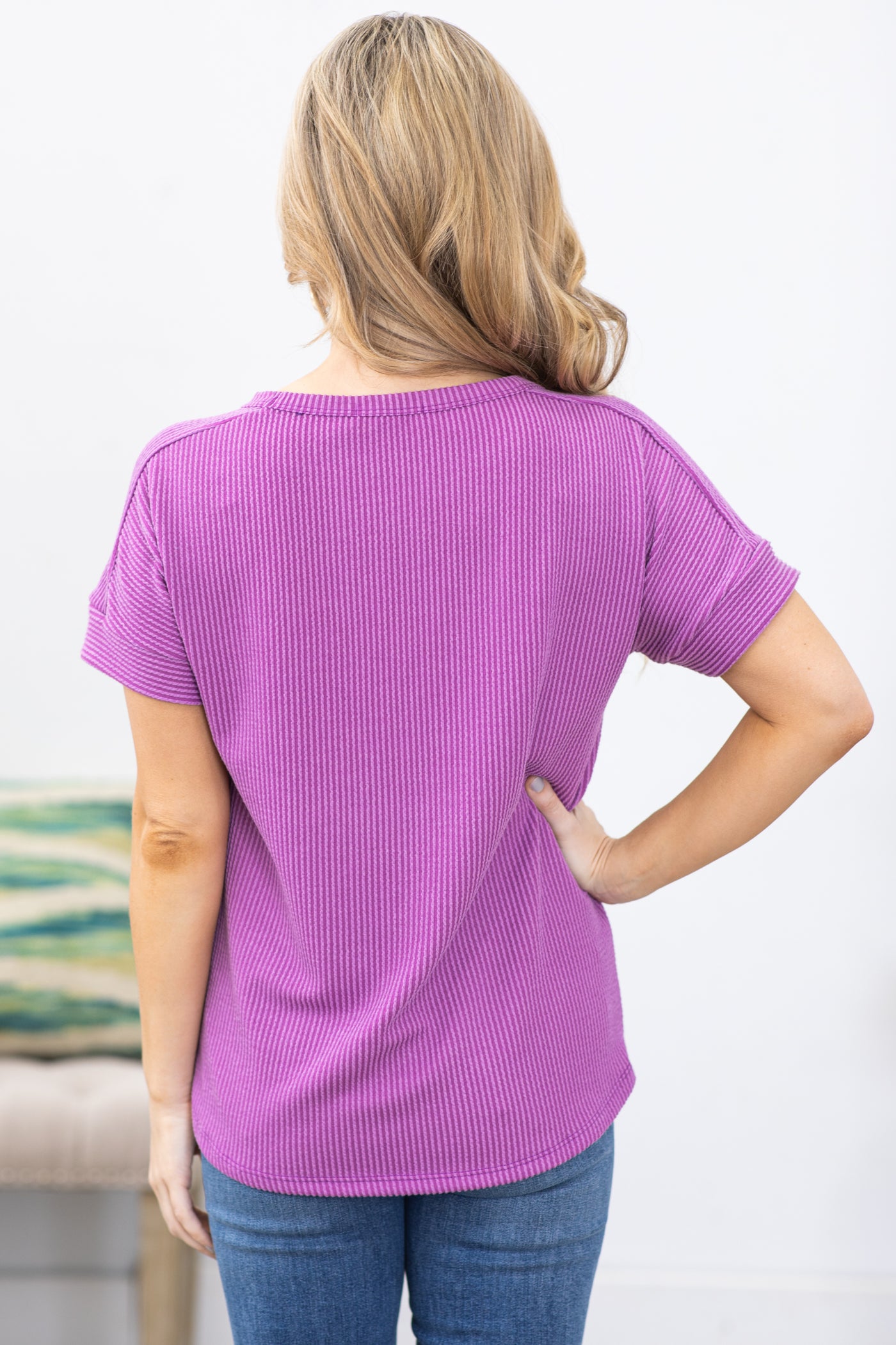 Plum Ribbed Short Sleeve Knit Top