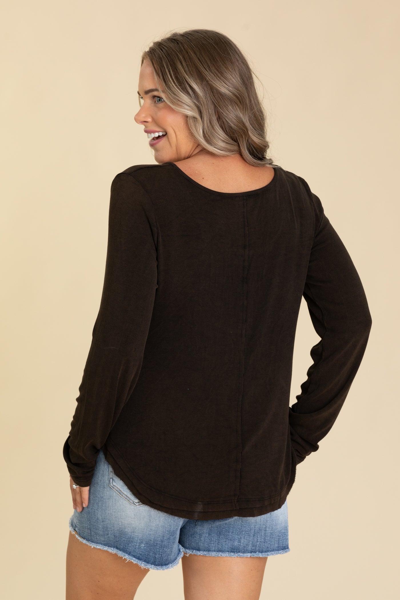 Henley Front Long Sleeve Scoop Neck Knit Top