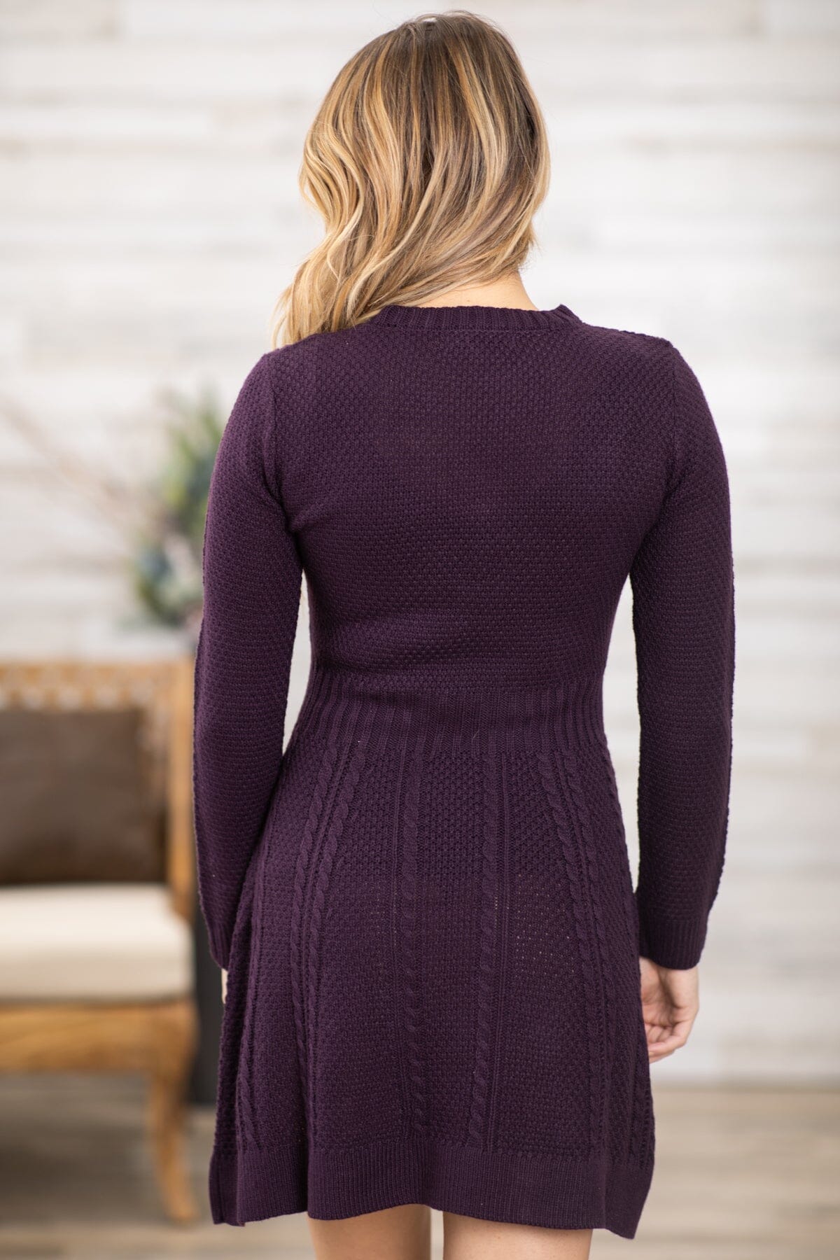 Purple Cable Knit Sweater Dress