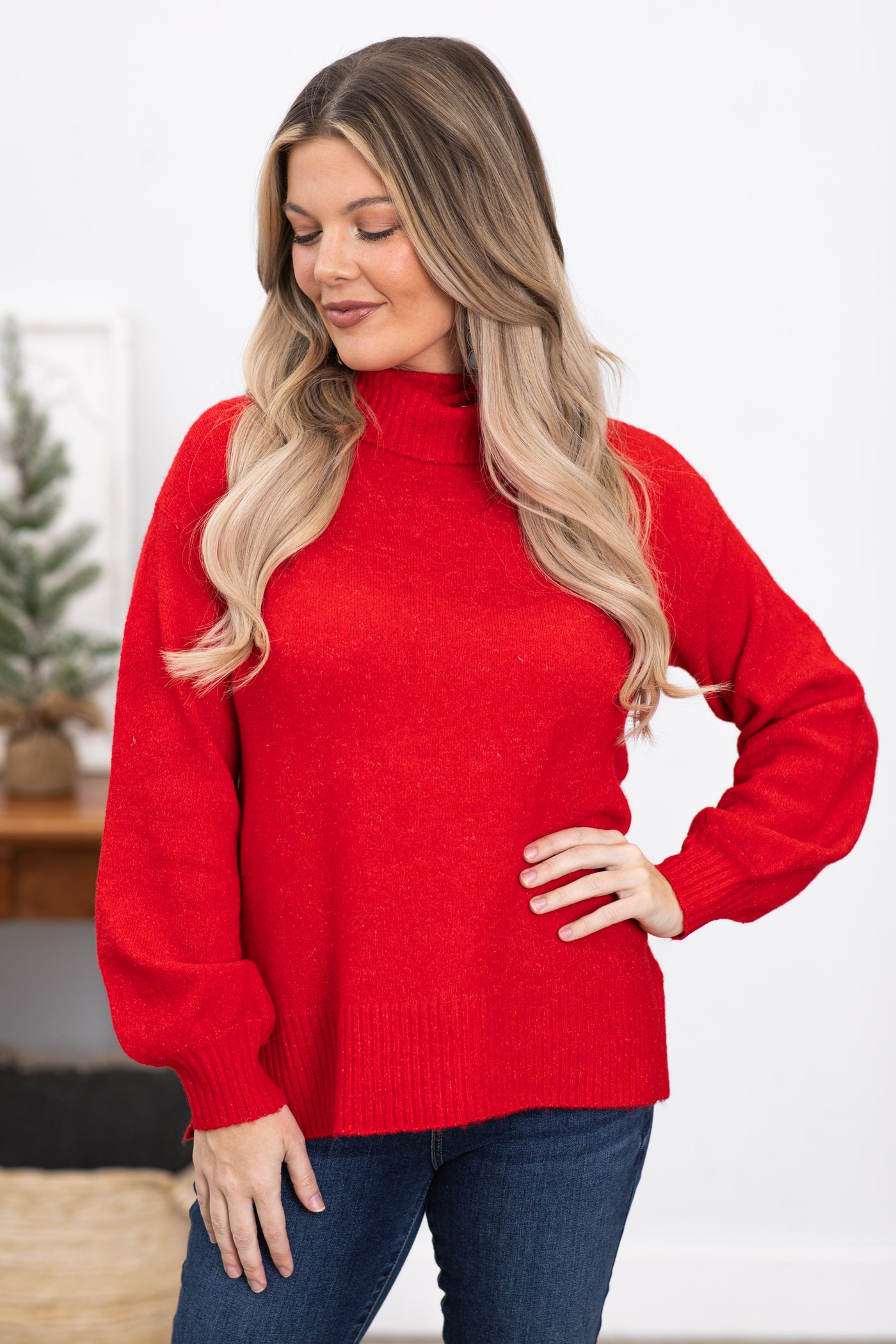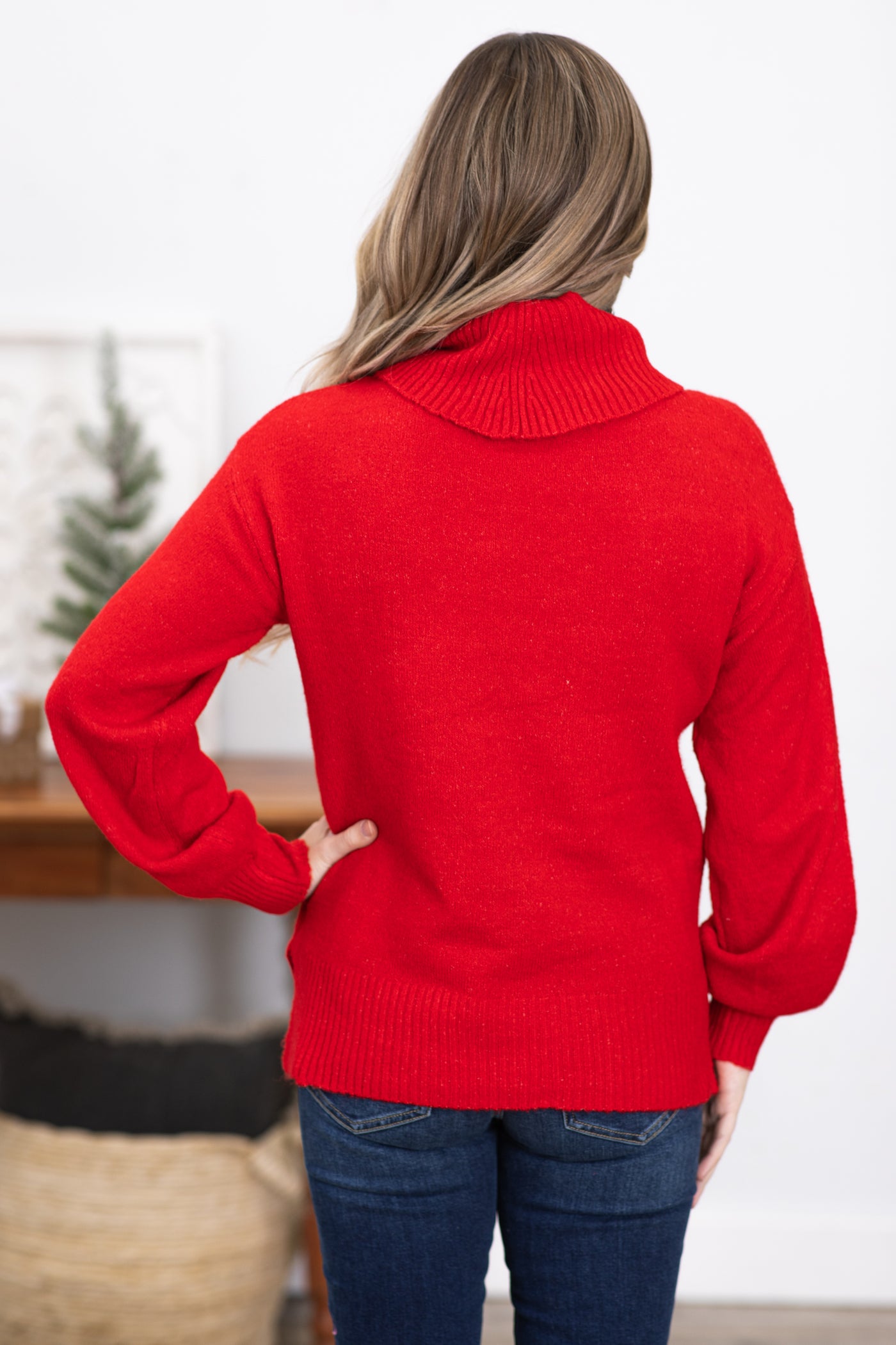 Red Balloon Sleeve Turtleneck Sweater