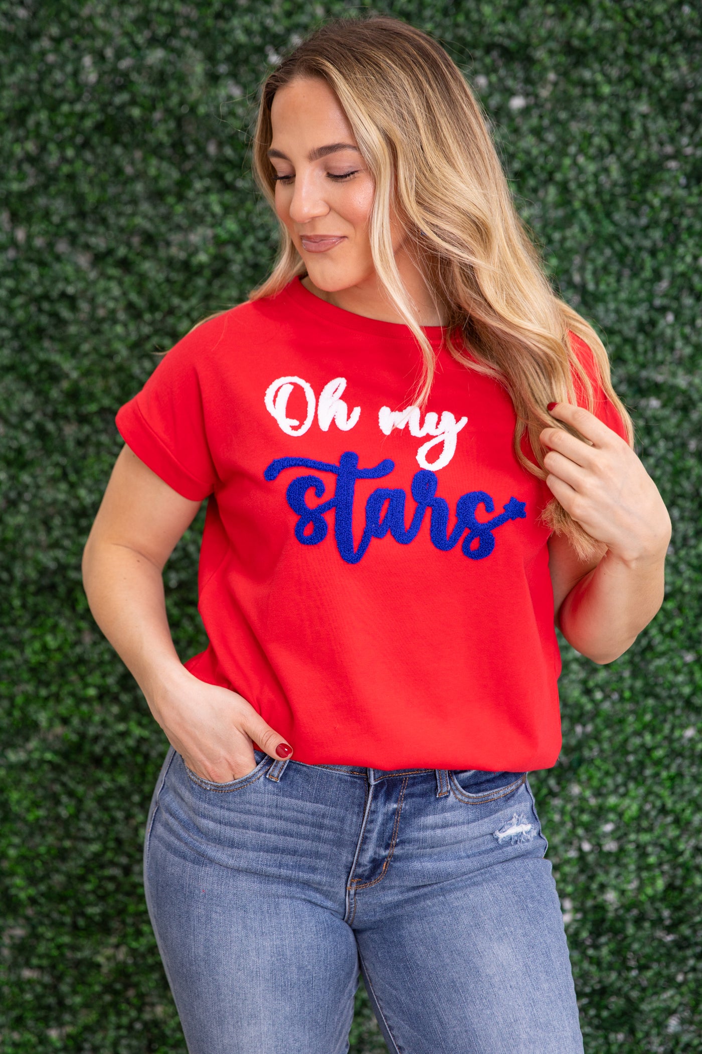 Red French Terry Oh My Stars Knit Top