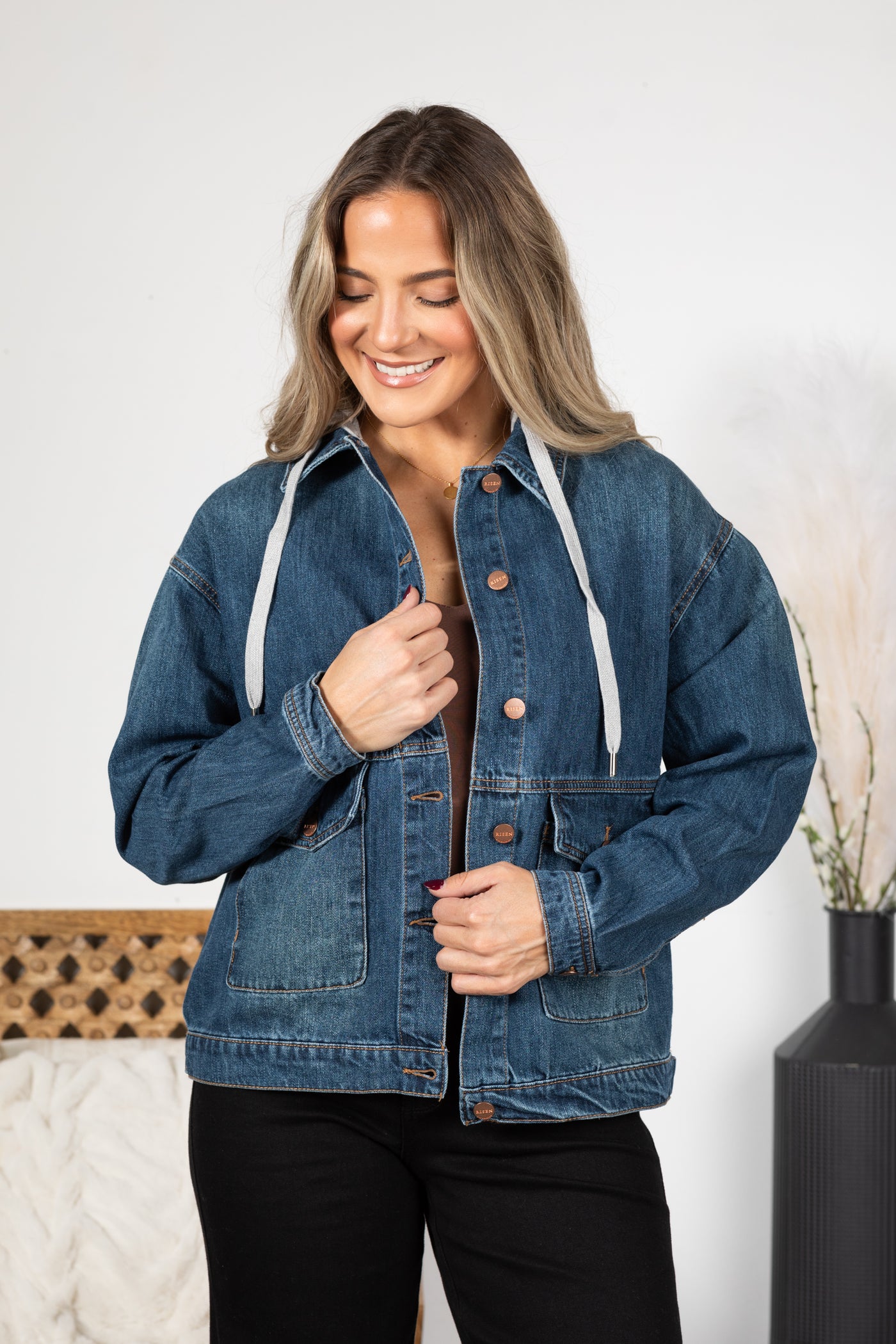 Risen Dark Wash Oversized Hoodie Denim Jacket