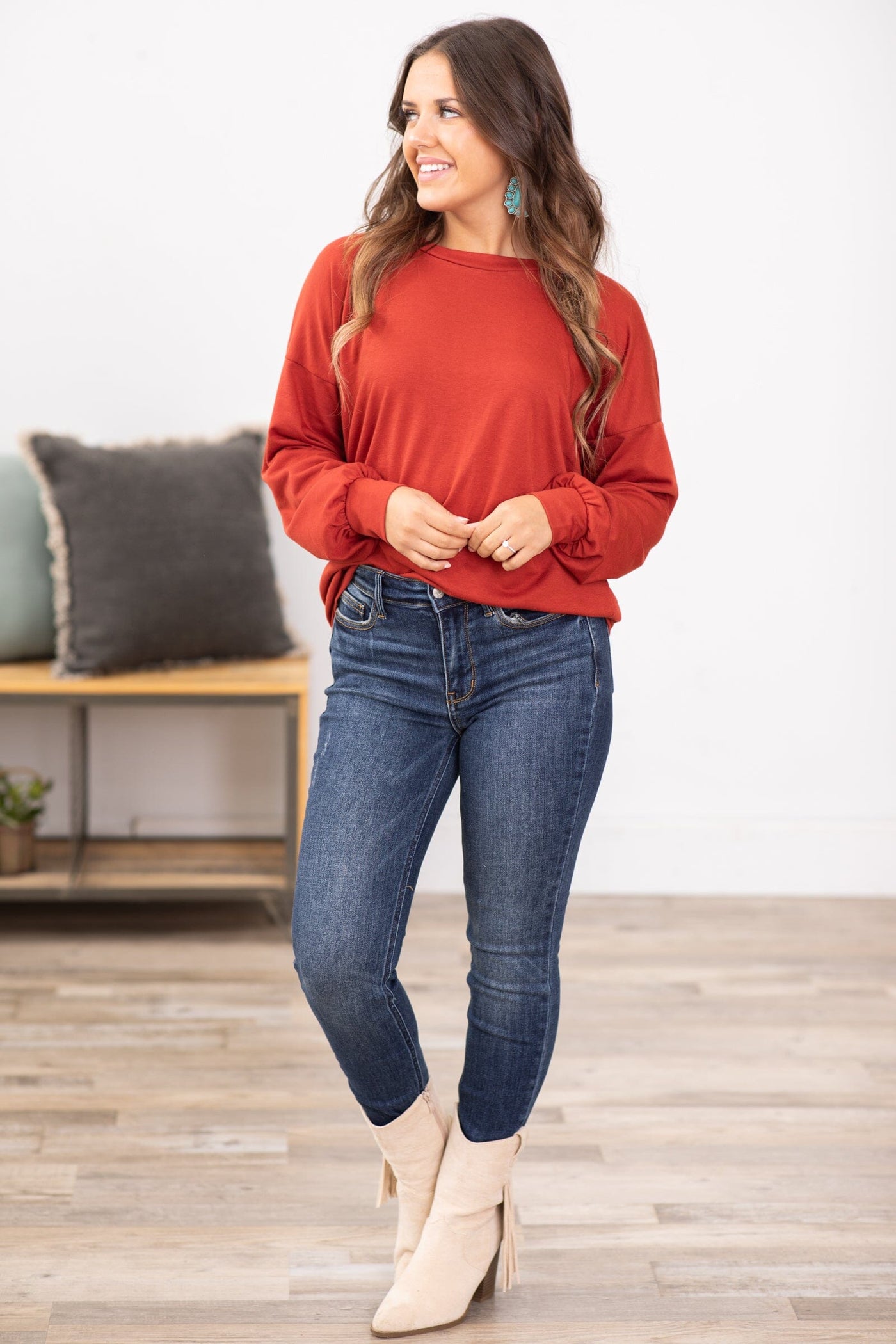 Cranberry Crew Neck Long Sleeve Top