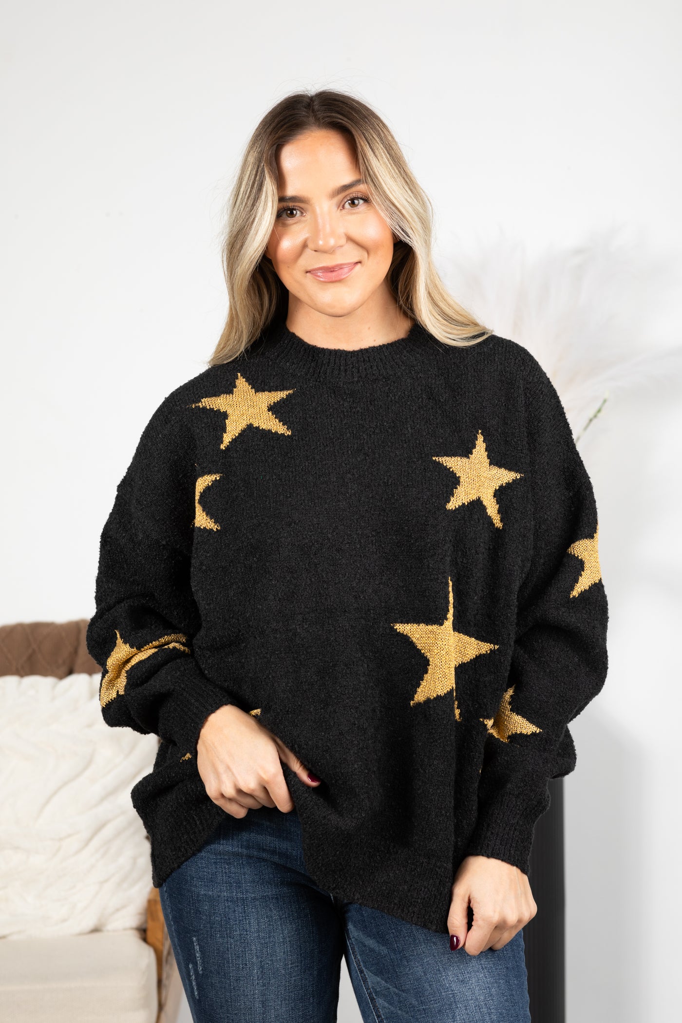 This sweater is so cozy and cute. Typically a size small and the S/M gives that perfect oversized feel. I have side tucked it into jeans. It has consistently gotten compliments each time I have worn it.