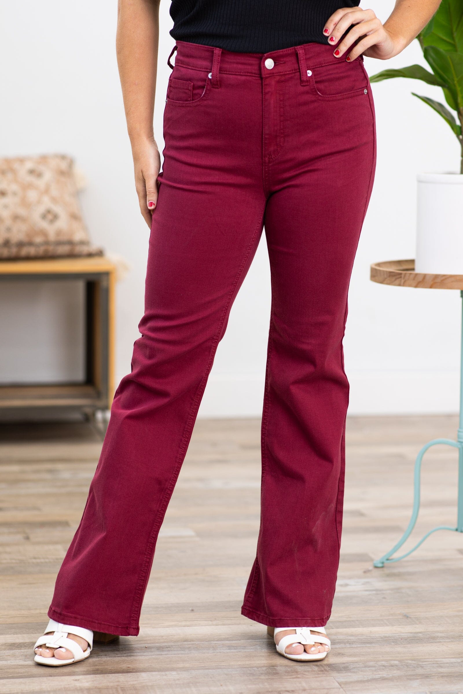 Sneak Peek Berry Kick Flare Raw Hem Jeans