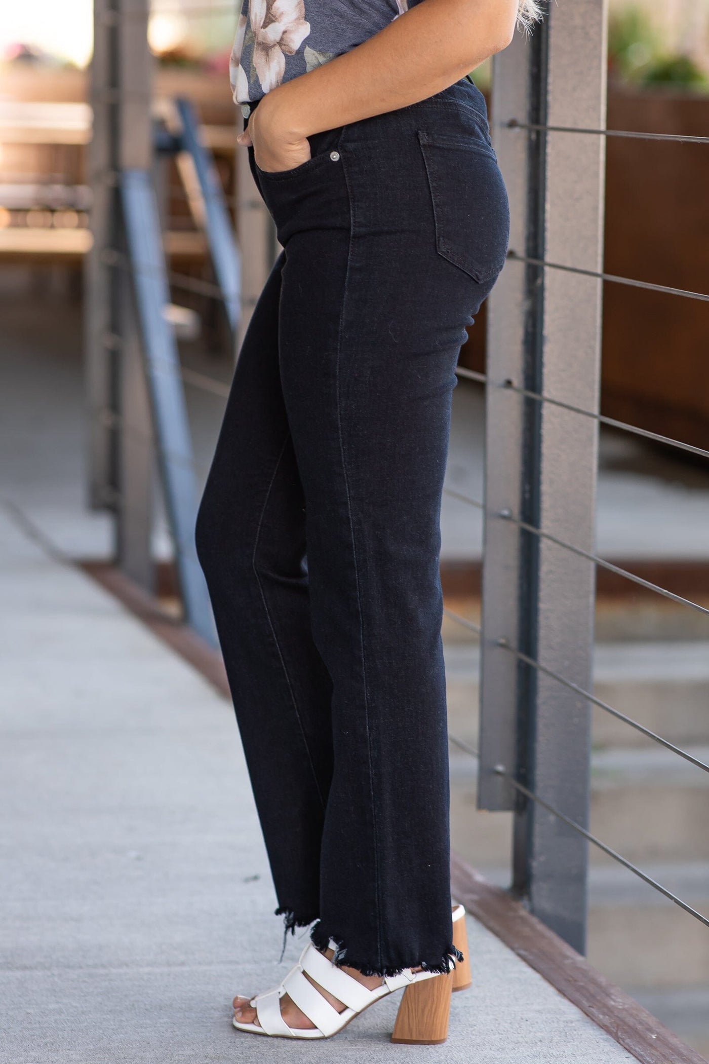 Sneak Peek Black Fray Hem Straight Leg Jeans