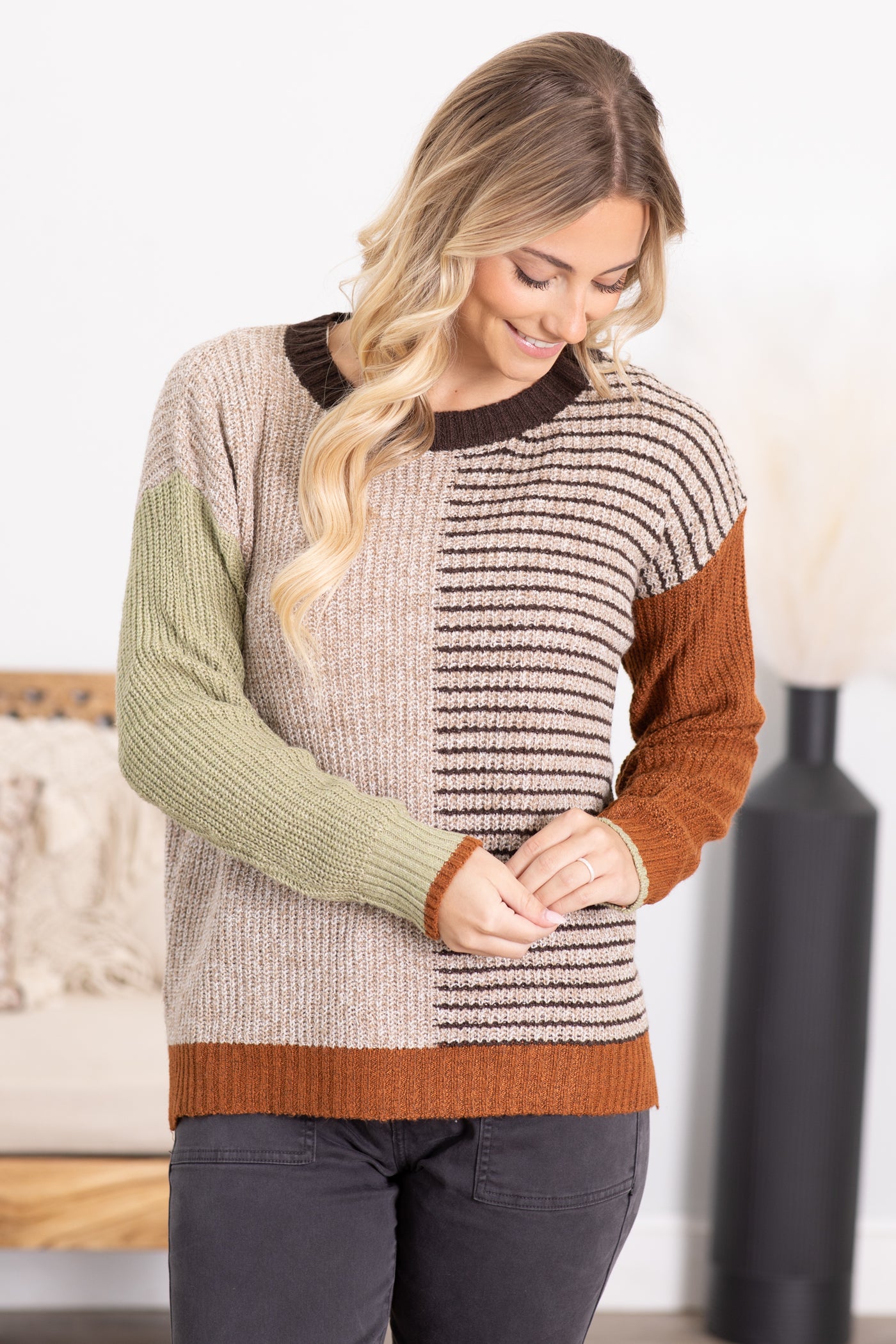 Stone Colorblock Stripe Detail Sweater