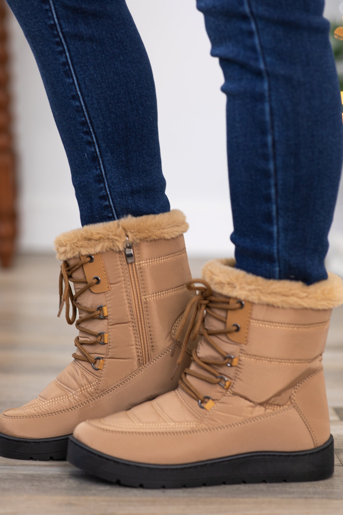 • Other Details: Lace Up With Faux Fur Trim and Side Zipper