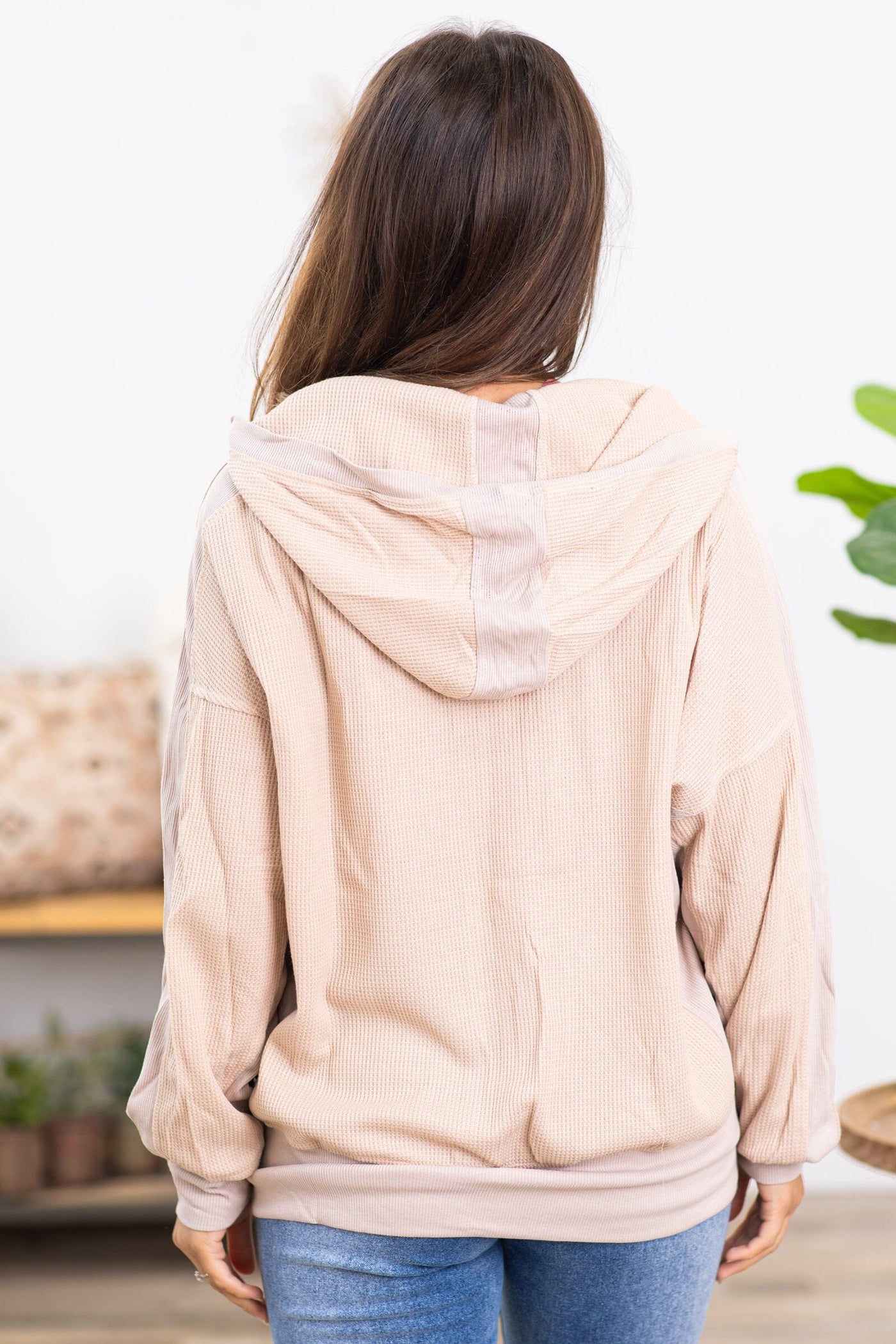 Tan Thermal Waffle Knit Hooded Sweatshirt