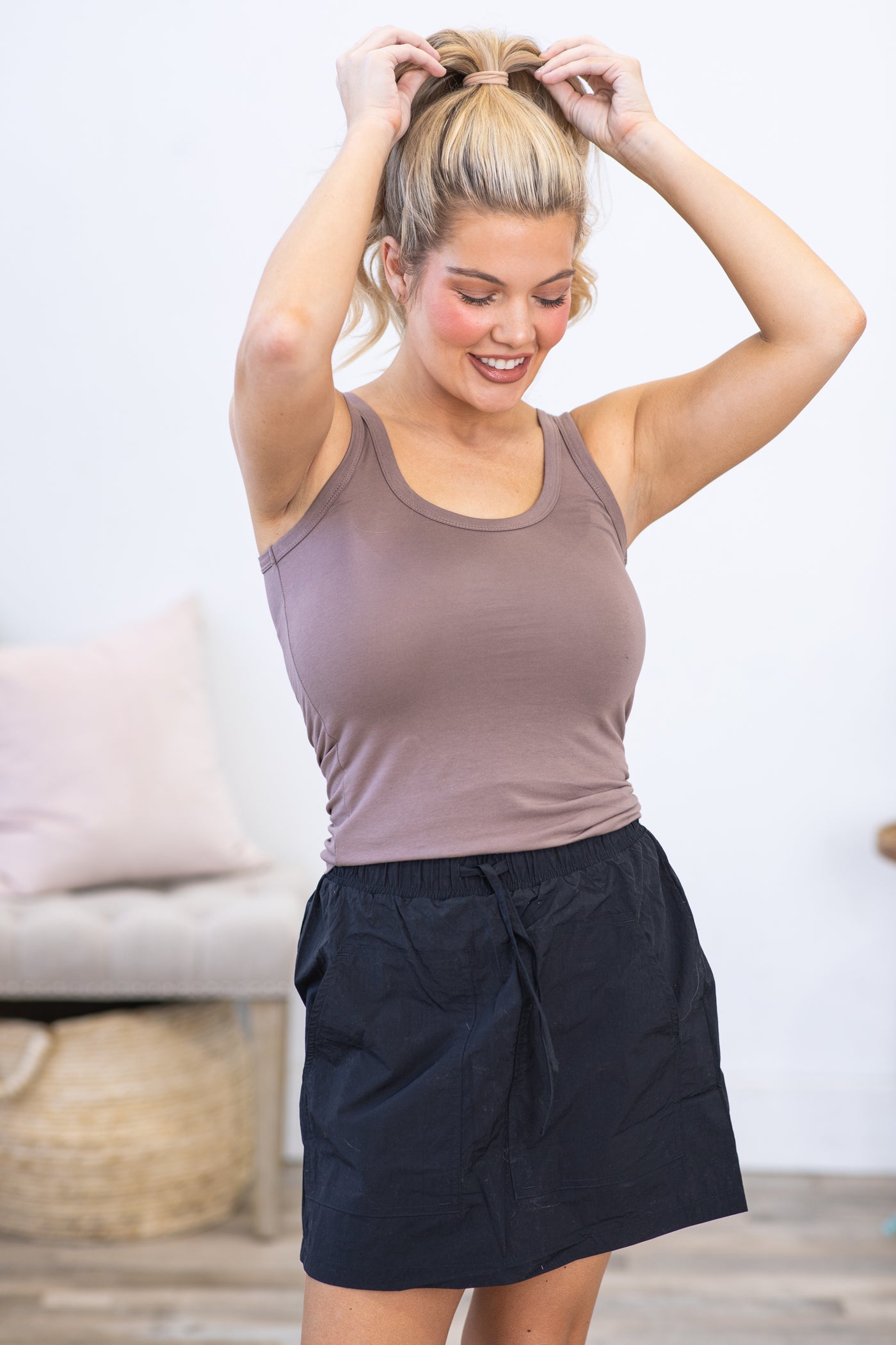 Taupe Scoop Neck Knit Tank Top