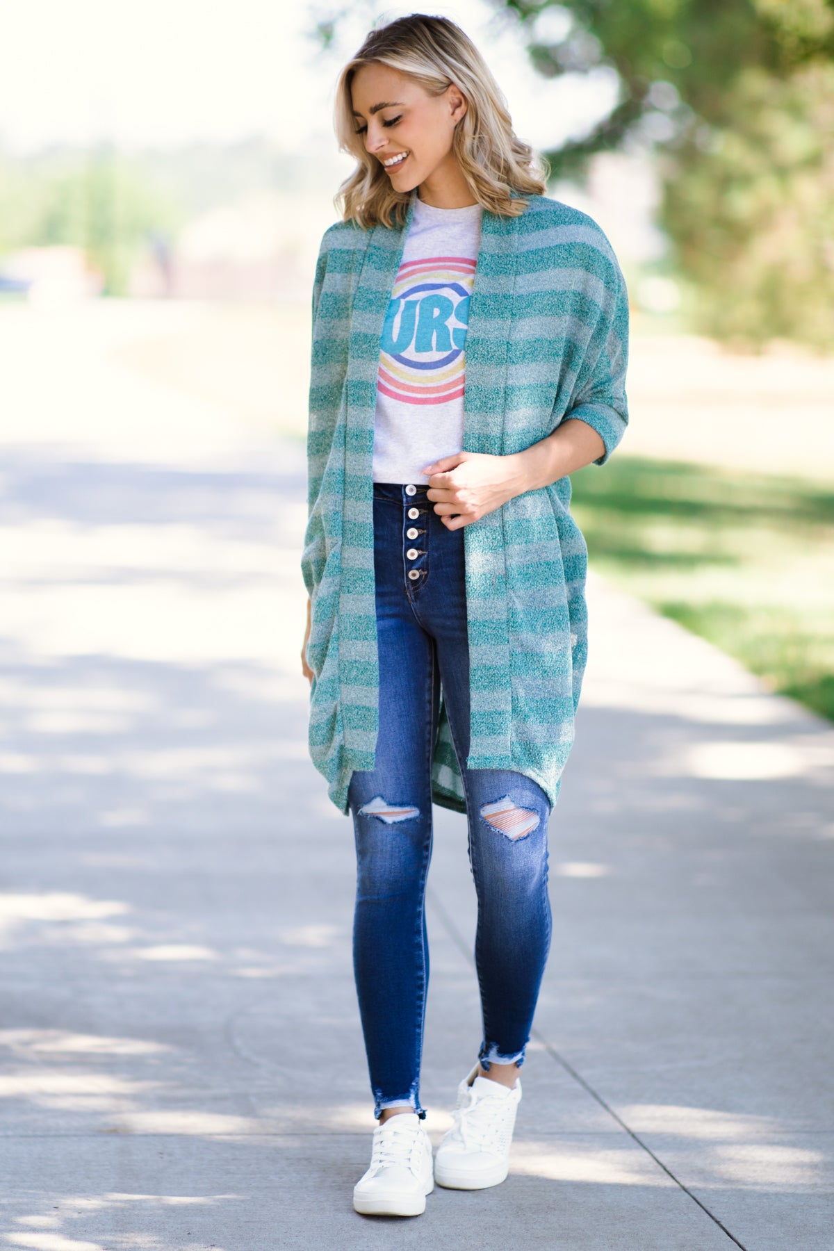 Teal Heathered Stripe Cardigan